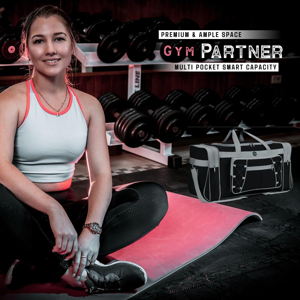 "Detail-oriented design Men's duffle bag with padded handles and an adjustable shoulder strap for comfort and versatility. Many pockets and practical mesh pockets for convenient storage.",