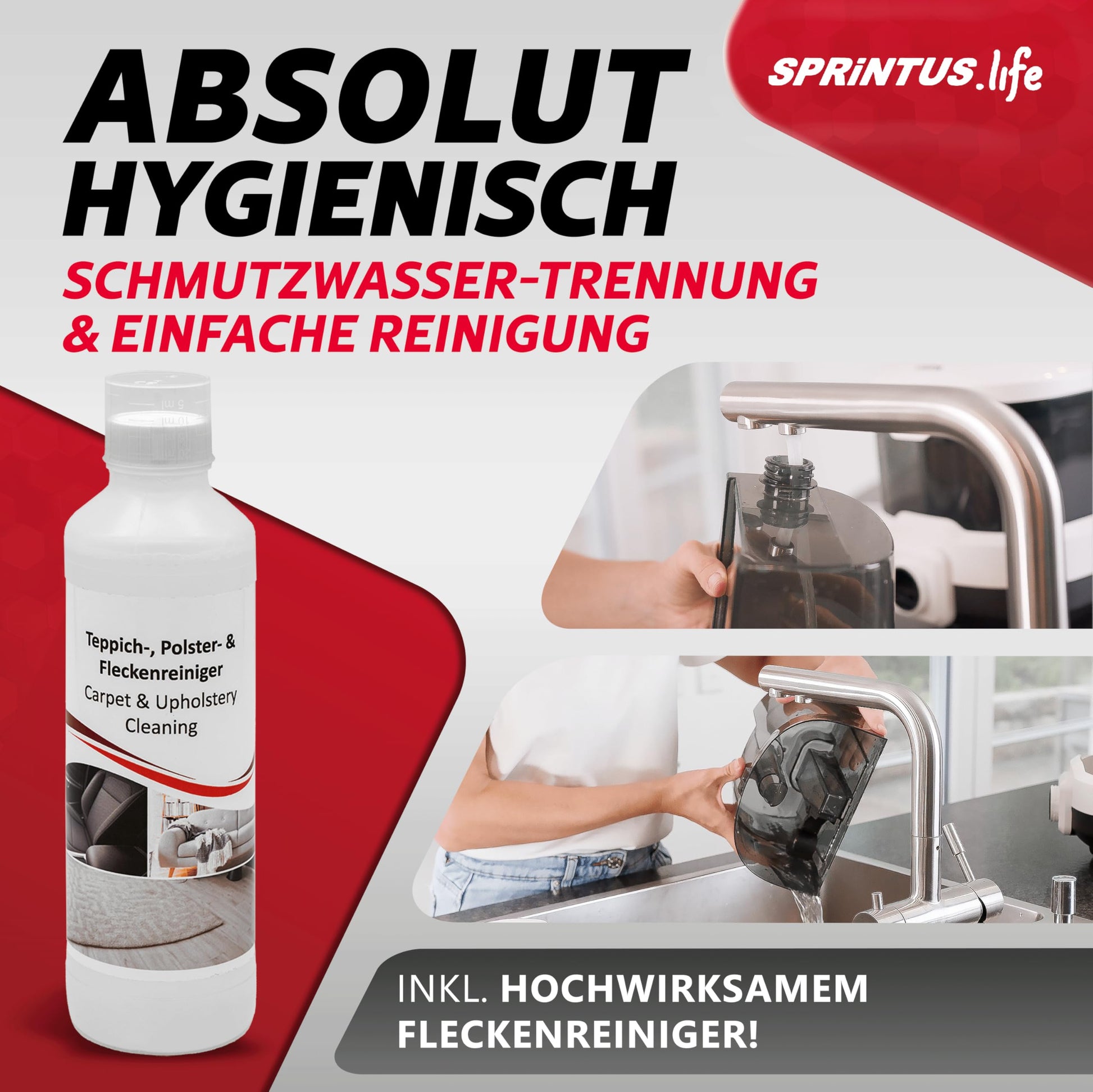 SPRiNTUS wet and dry vacuum cleaner upholstery cleaning device SPOTTY with 170mbar suction power for thorough cleaning of carpets, upholstery, pet hair, car & hard floors I Hygienic carpet cleaner wet vacuum cleaner [67db]