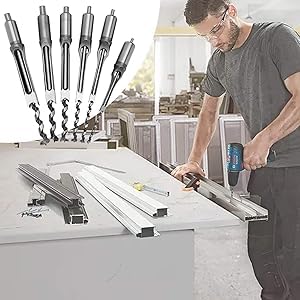 ["6 different sizes: Wood Drill Bit Set Applicable model: only for square hole machine. Wood drill bits 6 pieces per pack with different slot diameters to meet your needs. Size: 1/4 inch (6.35 mm), 5/16 inch (8 mm), 3/8 inch (9.5 mm), 1/2 inch (12.7 mm), 9/16 inch (14 mm), 5/8 inch (16 mm)."Square Drill Wood Function: Square wood drill bit has a double effect when used with a chisel machine and a hammer drill, the square perforation requires an electric drill, a hammer, and other tools. The square drills into the hole drilled by the rotating body, while the impact of the hammer's striking force on the outer body."Square Slot Drill Material Made of Steel: This square drill bit is made of special steel, heat treated, HRC48-50, Otoplee Square Hole Drill Bit Set for Woodworking provides high hardness, an extended core, and high concentricity."Square Wood Chisel Wide Application: The professional square drill bit is suitable for construction sites, installation, renovation, decoration, etc. An excellent accessory for chisels, shears, and woodworking."Tips: Wood Chisel For Router The drill chisel alone will not work in a chuck for your drill, you need to press in a mortise lock. Ideal for drilling square holes in wood with a mortising machine or mortising attachment Square hole drills are mainly used for woodworking."]