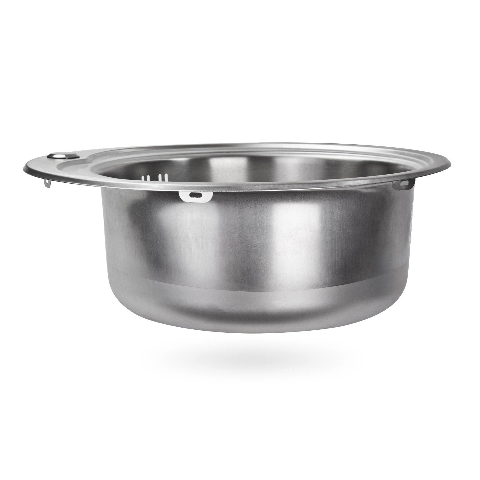 Stabilo-Sanitaire round and compact built-in sink with integrated overflow made of high-quality stainless steel, kitchen round basin 49cm kitchen sink in beautiful and modern design.