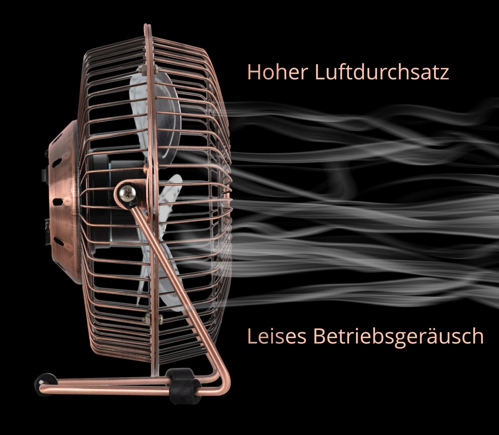 "STURDY DESIGN - Made entirely of metal, the mini desk fan is not only durable but also a real eye-catcher in copper."