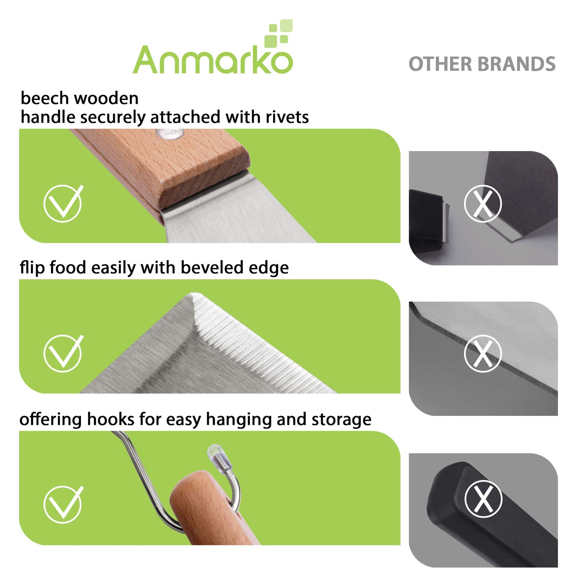 ["PROFESSIONAL GRILL UTENSILS: Elevate your barbecue night with Anmarko's cooking and grilling tools. Enjoy juicy burgers with friends and family.", "HIGH-QUALITY MATERIAL: The spatula is made of high-quality stainless steel and rust-free. The sturdy material makes it easy to handle roasts and thick meat.", "FIRM GRIP: The ergonomic handle ensures a comfortable grip on the spatula. Hang it up after use thanks to the hole in the handle.", "PERFECT SET: The spatula won't let you down. Whether it's a tender steak, juicy burger, or delicious pancakes - you can master any dish with this spatula.", "EASY CLEANING: This kitchen tool is easy to clean. Simply wash it normally after use. The grill utensils are also dishwasher safe. Enjoy quality time with friends."]