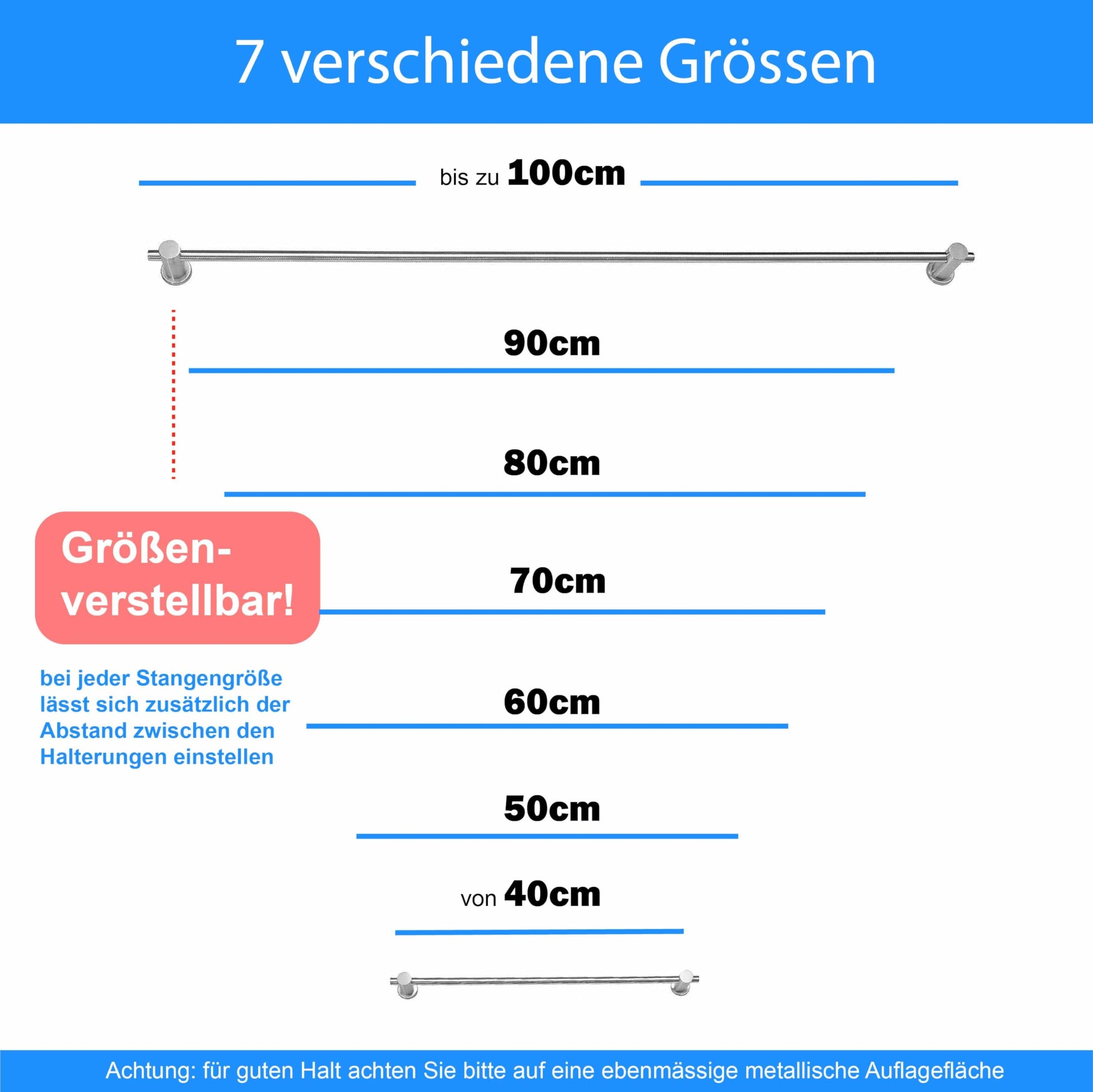 Stainless steel towel holder with magnetic attachment in 7 lengths 40-100cm (50cm)