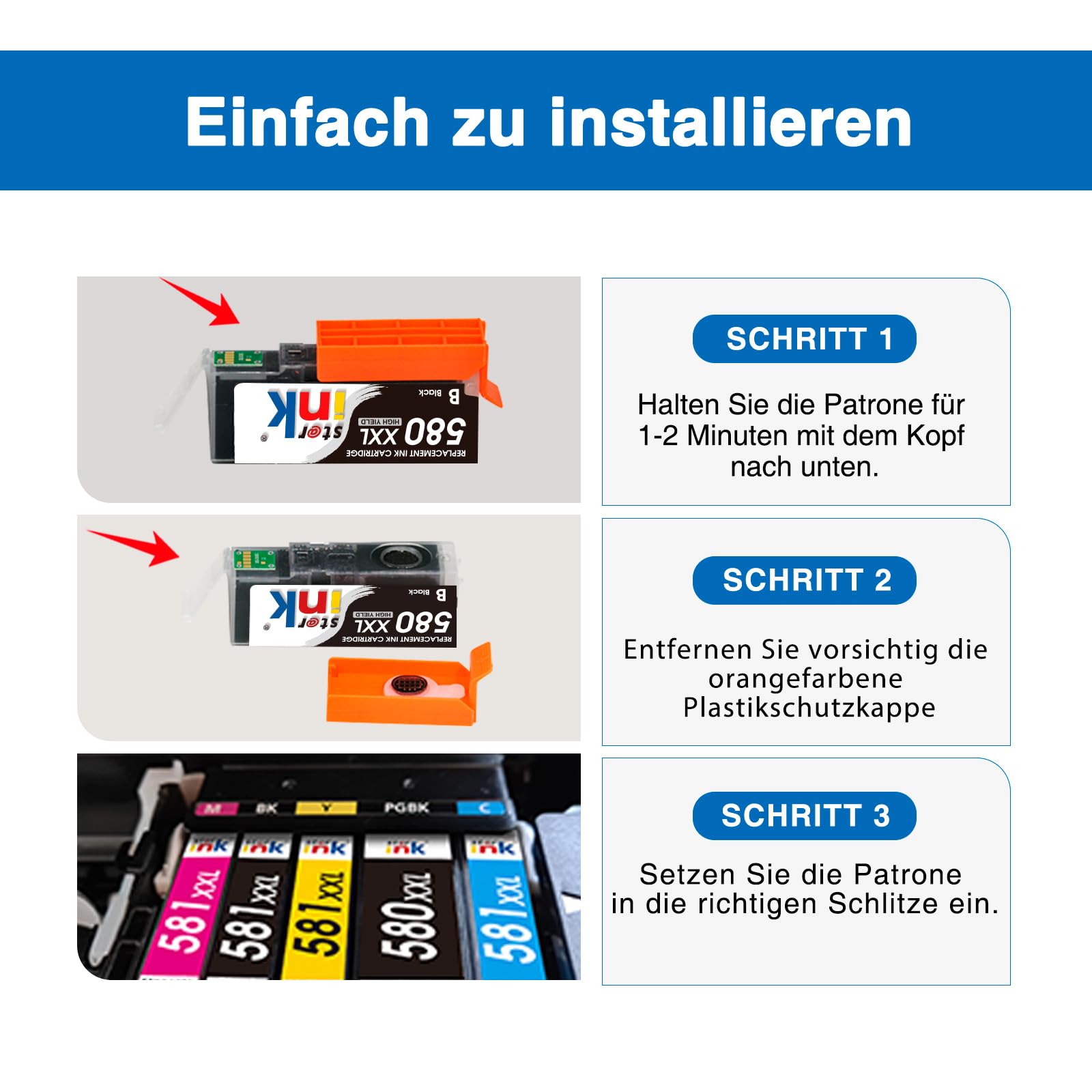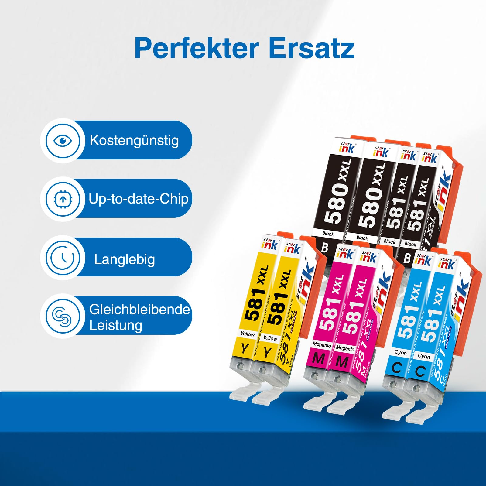 "Starink for Canon PGI-580XXL CLI-581XXL Printer Cartridges Multipack: Easy installation and operation; Smart chips for stable compatibility; Professional quality inks for consistent printing, vibrant colors, and clear documents; Long-lasting high capacity for minimal replacement"]