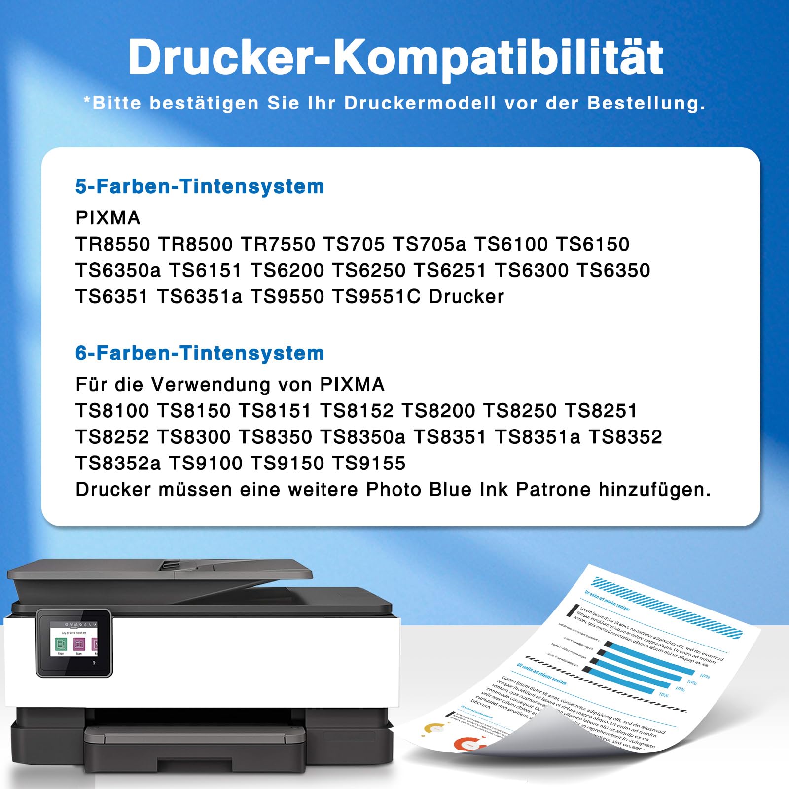 "Compatible with: Canon PIXMA TR8550 TS705 TS6350 TR8500 TR7550 TS6150 TS6151 TS6250 TS6251 TS6350a TS6351 TS6351a TS705a TS8150 TS8151 TS8152 TS8250 TS8251 TS8252 TS8350 TS8350a TS8351 TS8351a TS8352 TS8352a TS9150 TS9155 TS9550 TS9551C",