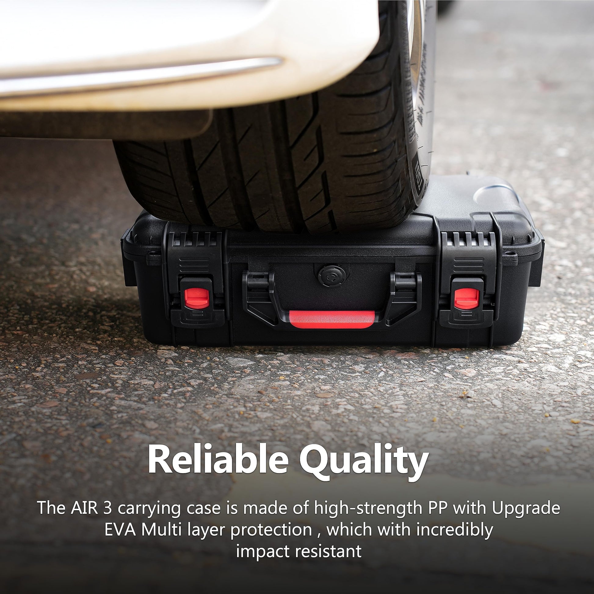 "Complete protection: The Air 3 carrying case is made of safe and durable material that provides better impact protection, shock resistance, pressure and abrasion resistance. Sealing rubber strips are used around the joints in the housing, high-density closure, dense sealing, can withstand the 100 mm heavy rain outdoors to ensure that DJI Air 3 drone and accessories provide full protection.",