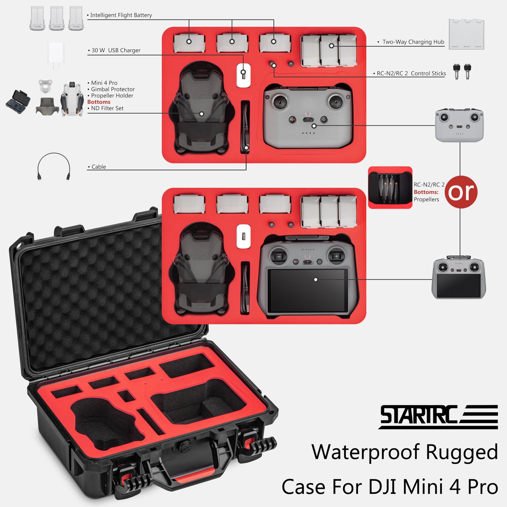STARTRC Mini 4 Pro case, waterproof hardshell storage bag for DJI Mini 4 Pro/Mini 3/3 Pro RC accessories (RC/N1/N2)