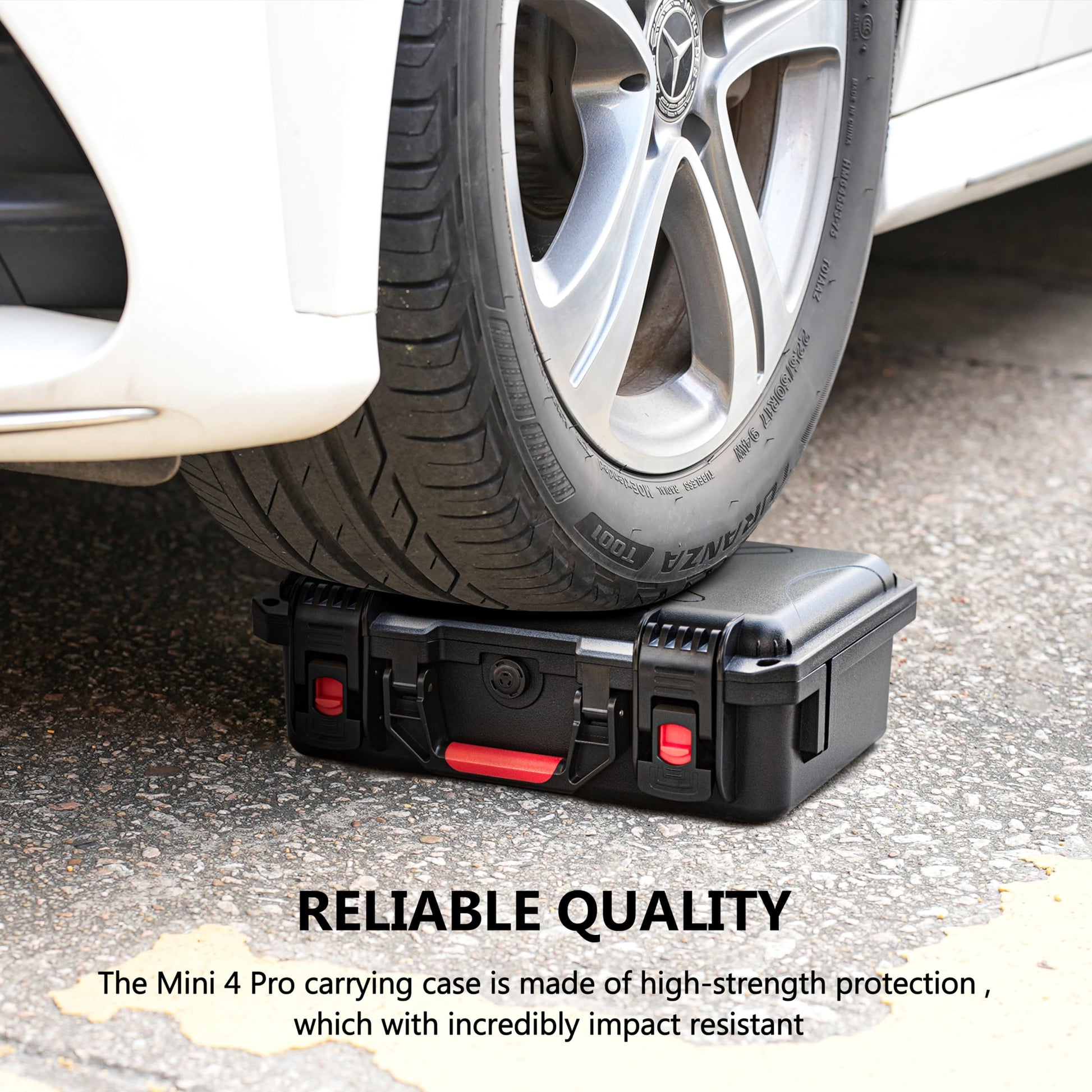 ["Custom Design" This hardshell case is specially designed for the DJI Mini 4 pro/Mini 3/Mini 3 Pro & RC remote controller and other accessories. NOT SUITABLE FOR RC 2 CONTROLLER. NOTE: The antenna part of the Mini 4 Pro RC 2 controller cannot be embedded, but the waterproof hard case can be closed and used normally without shaking.