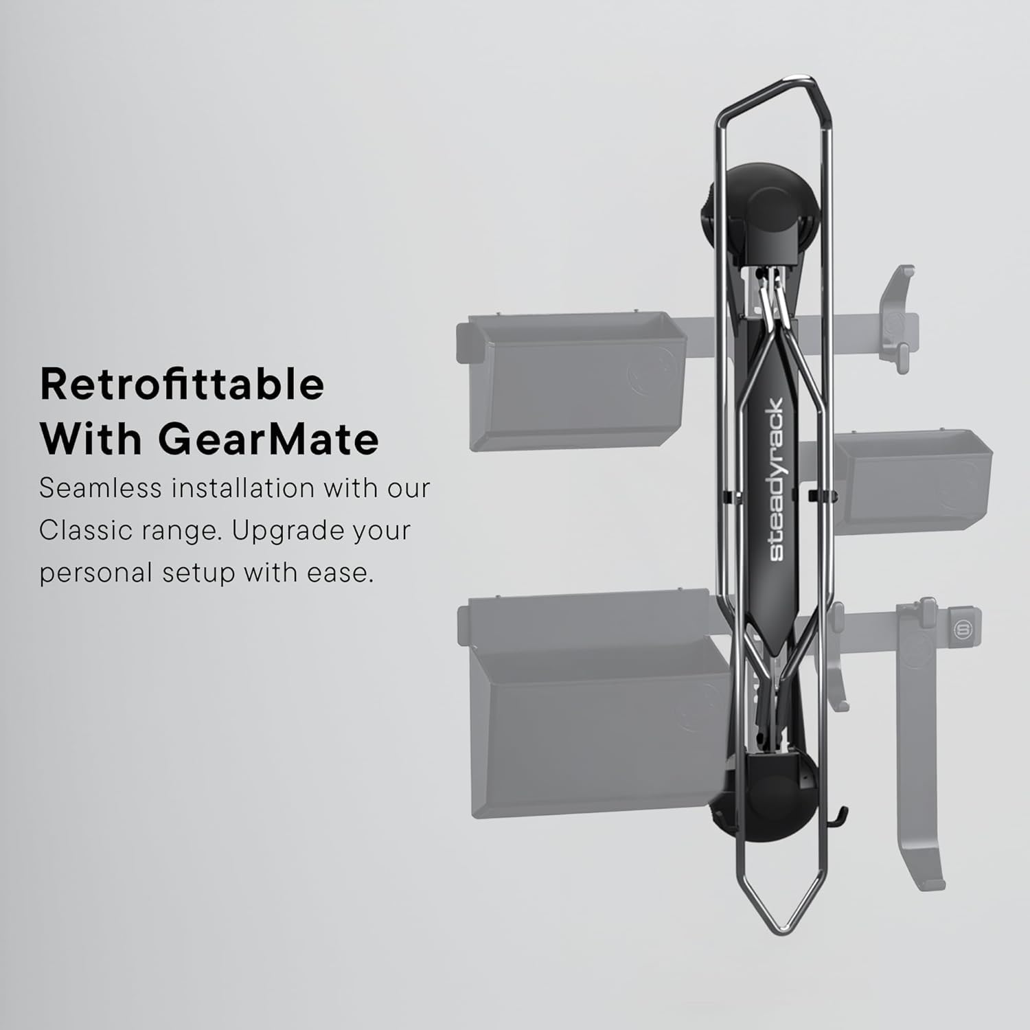 ["Robust & durable - Made of steel and UV-treated polymer, the Steadyrack Classic is particularly resistant and provides a reliable storage solution for your bike.","Versatile - Suitable for tire widths up to 2.1 inches and wheel sizes between 20 and 29 inches - perfect for many city bikes, road bikes, or trekking bikes.","Easy to use - Simply place your bike on the rear wheel and slide it into the holder - without heavy lifting or complicated hanging.","Space-saving & swiveling - The smart 160° swivel system saves space - ideal for small apartments, narrow hallways, or tight garages.","Easy installation - The mounting kit for masonry or wooden stud walls is included. Important: Not suitable for plasterboard - this unfortunately voids the warranty."]