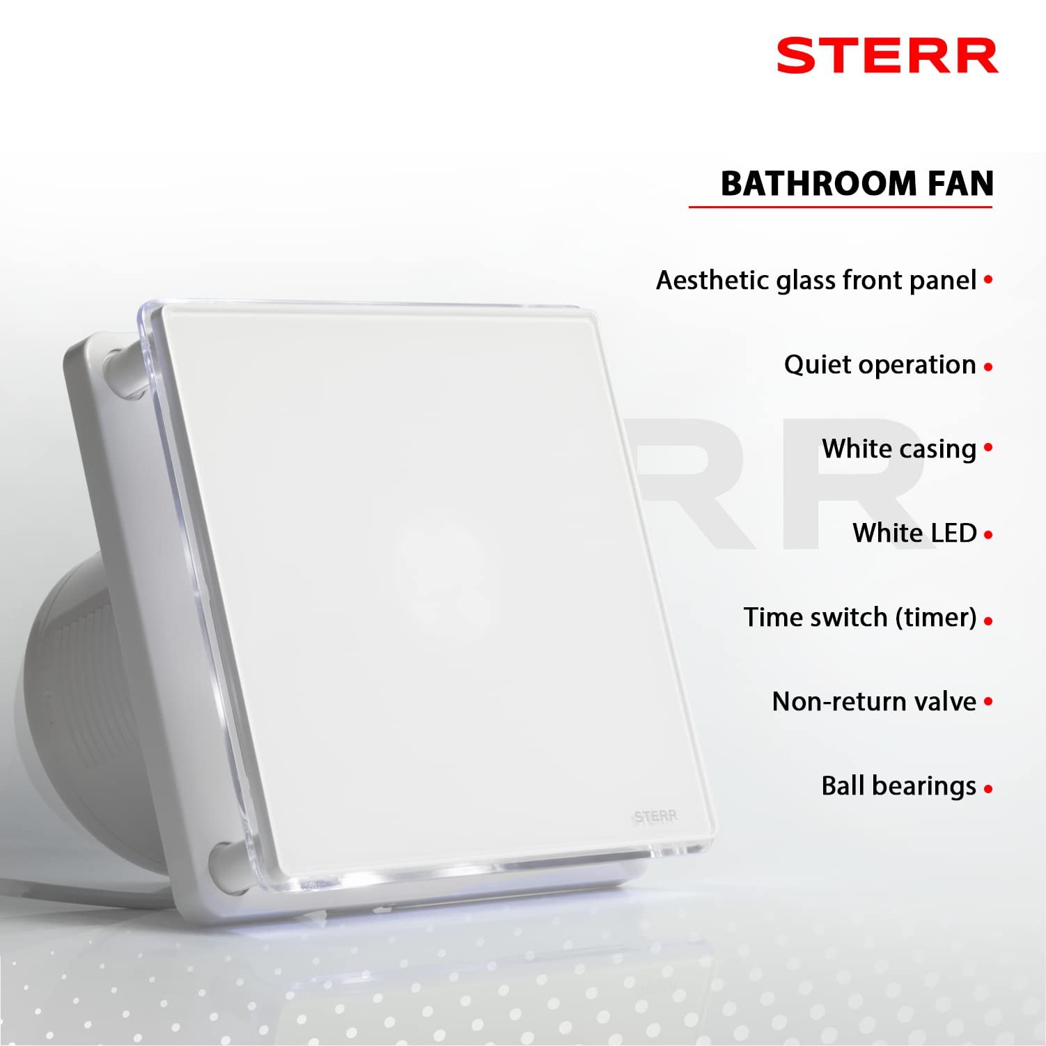 STERR White Bathroom Fan 100 mm with LED + TIMER - Bathroom Ventilation Fan - Glass Front - Modern Appearance - BFS100LT - 10 W