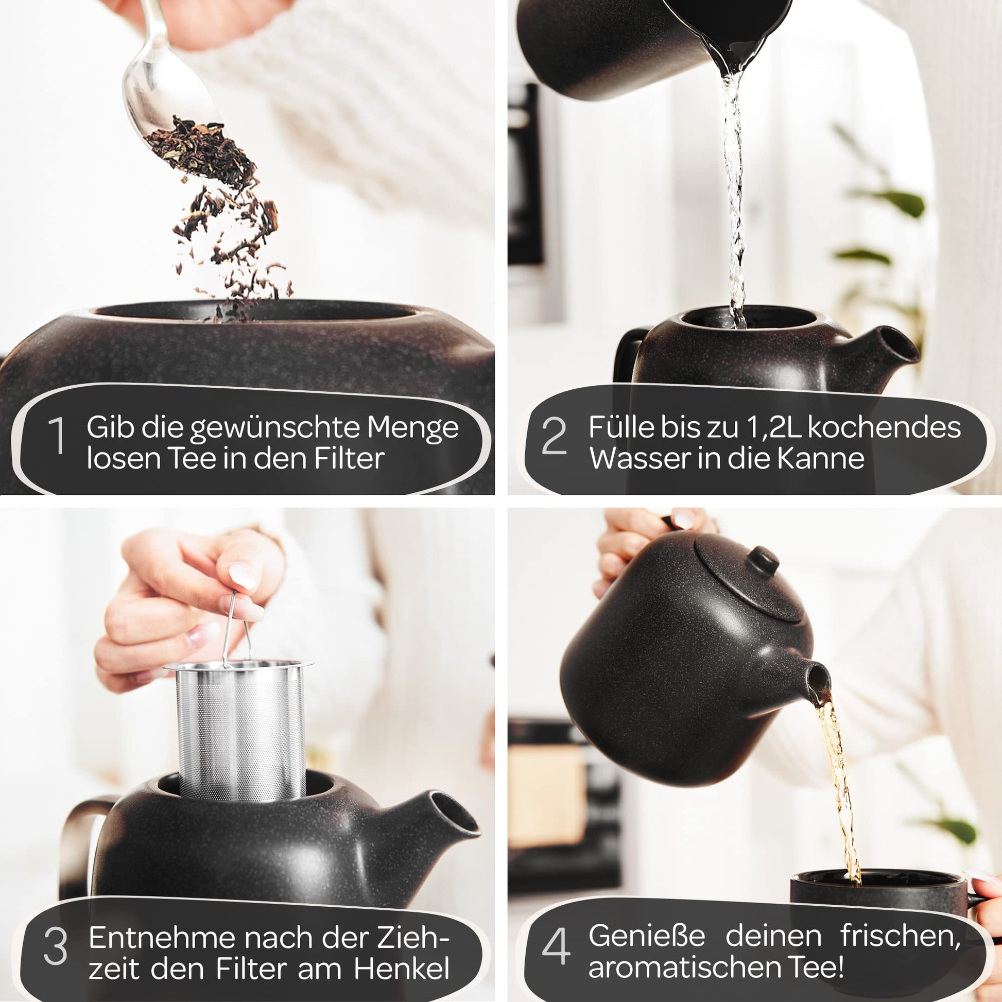 "π« ROBUST CERAMIC - has better heat retention and is much more stable than fragile glass. Additionally, ceramic does not absorb unpleasant odors like stainless steel.","π« THE CERAMIC MIRACLE MATERIAL - is based on natural raw materials and is fully recyclable. This durable material is free of toxic substances and perfect for humans and the environment.","π« ELEGANT CERAMIC WARMER - matches your STONE AGE teapot. Keep your delicious tea at optimal drinking temperature all evening long. Suitable for all common tea lights!","π« HIGH-QUALITY TEA STRAINER - made of rust-resistant 304 stainless steel. Ideal for loose tea and fruit pieces. It is easily removable and reaches the bottom of the teapot without any problems.","π« MONEY BACK PROMISE - if you are not 100% satisfied with your STONE AGE teapot, we will immediately refund the full amount to your account. 60 days long and without any ifs or buts."