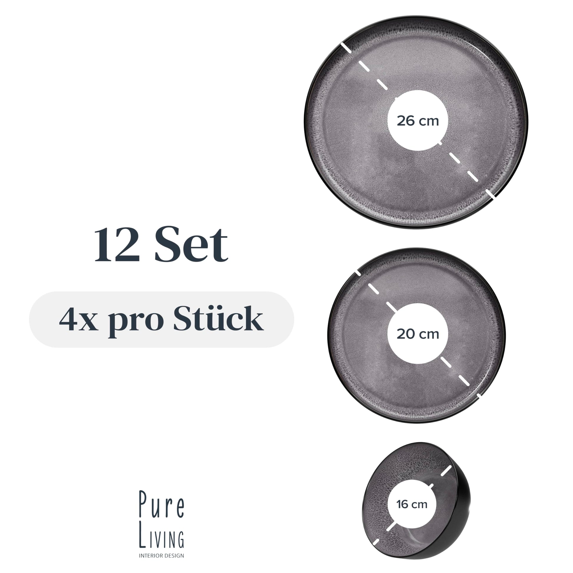 Stoneware dinnerware set for 4 people Ibiza 12 pcs. WINNER, Gorgeous Mediterranean Stoneware Dinnerware Set, Bowl and Plate Set, Tableware for 4 people, Pure Living dinnerware sets in grey.