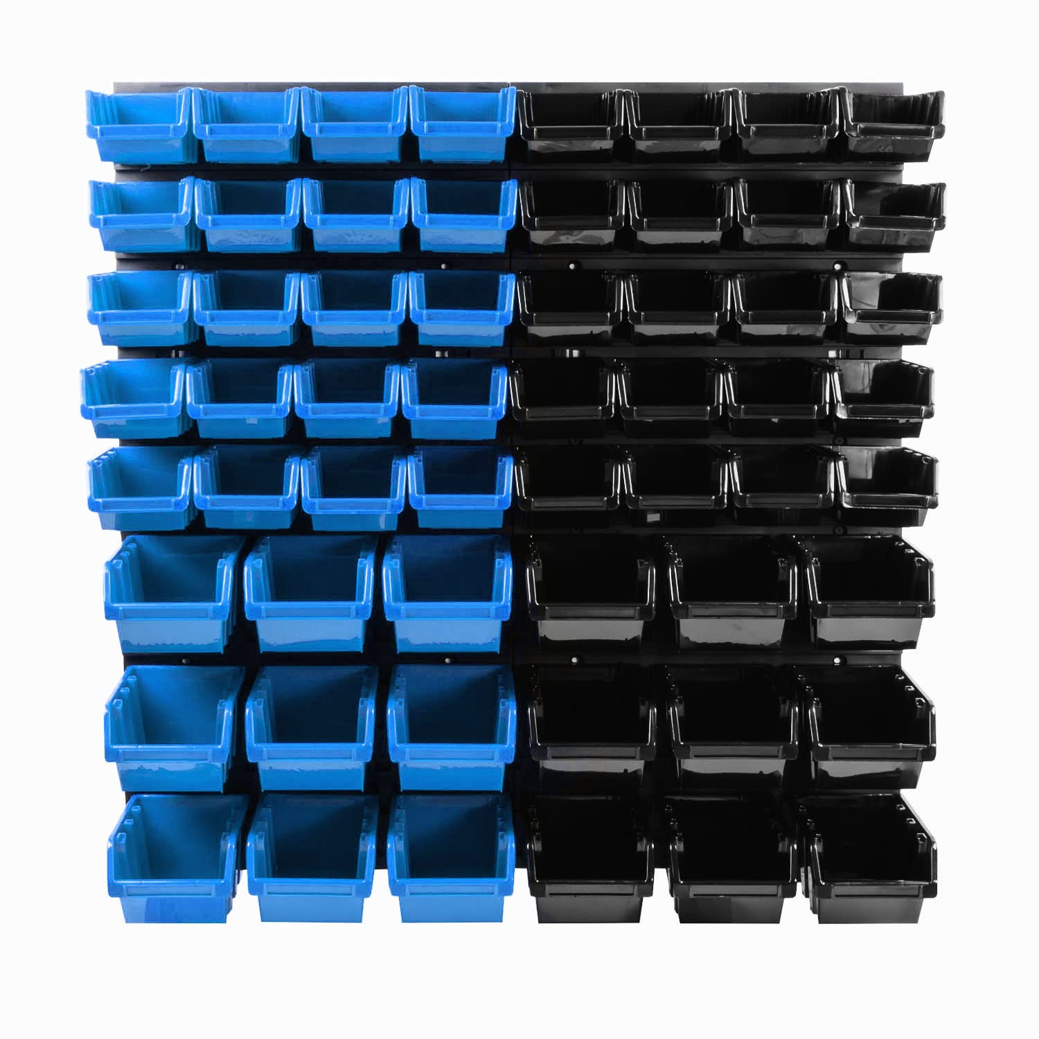 Storage bins: 20 pcs. 3.94 x 6.10 x 2.76 inches Blue + 20 pcs. 3.94 x 6.10 x 2.76 inches Black + 9 pcs. 4.72 x 7.68 x 3.54 inches Blue + 9 pcs. 4.72 x 7.68 x 3.54 inches Black