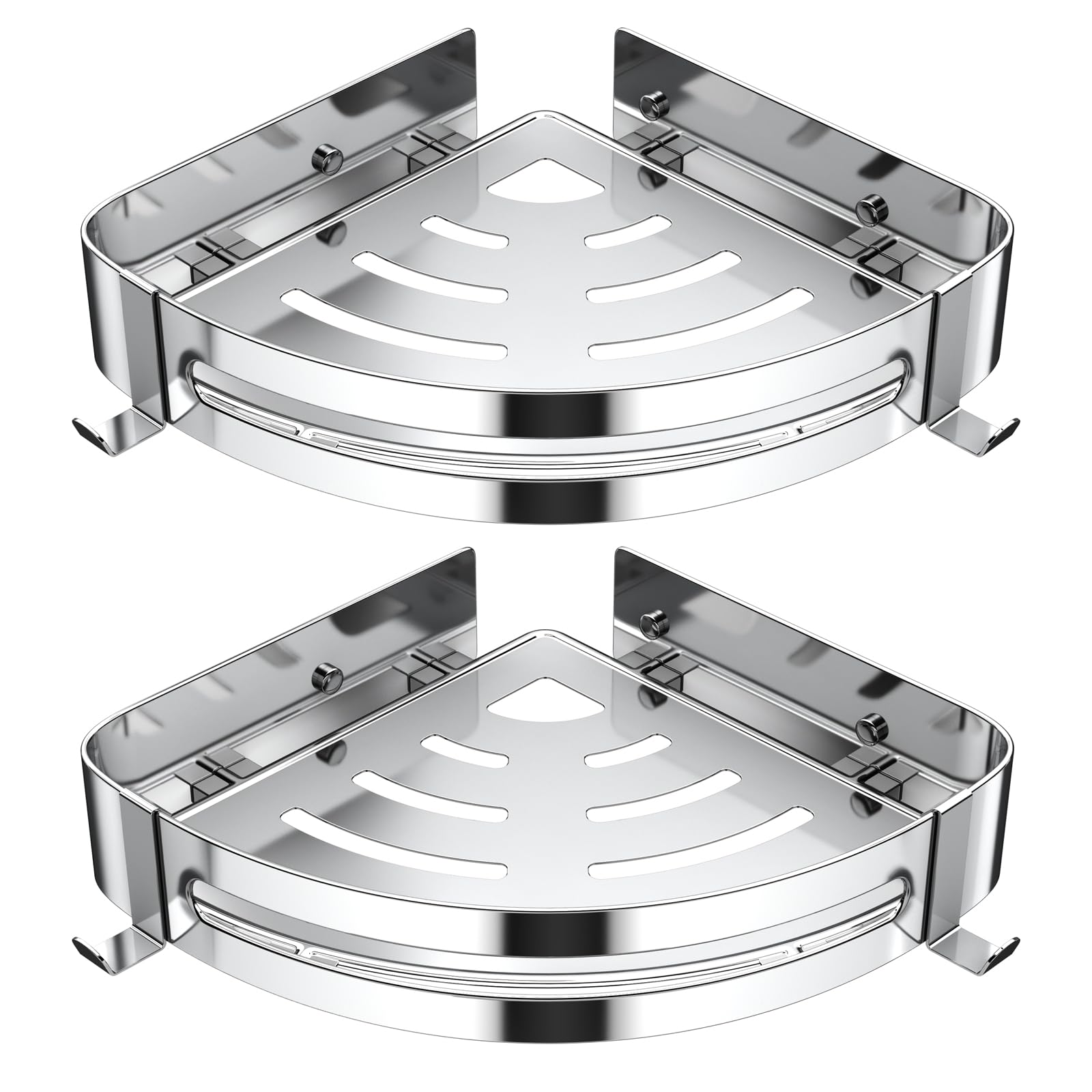 Strength Enemy Shower Caddy No Drilling, Shower Corner Shelf, Shower Caddy with 4 Hooks, Stainless Steel Shower Caddy for Bathroom Kitchen (2 Pack, Silver)