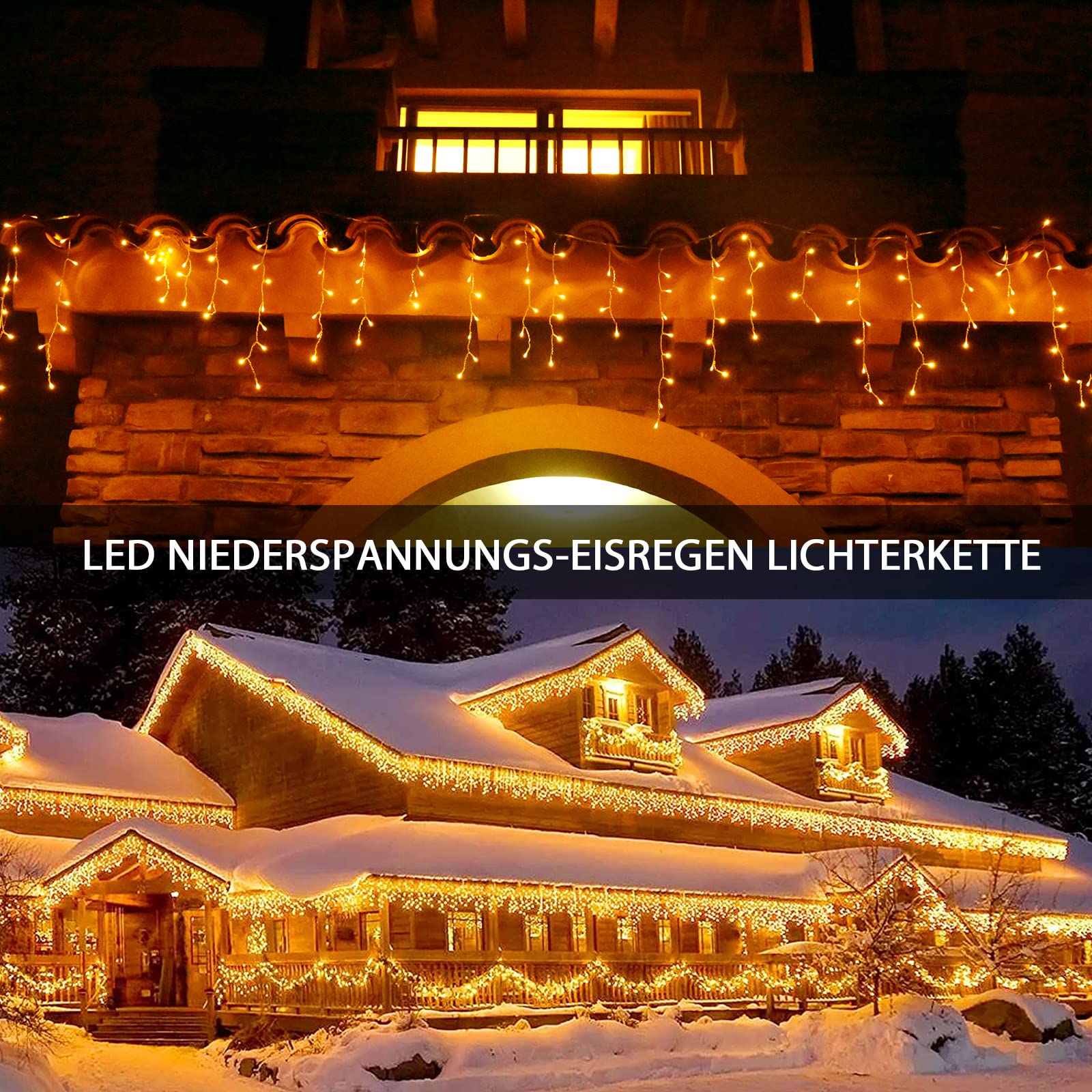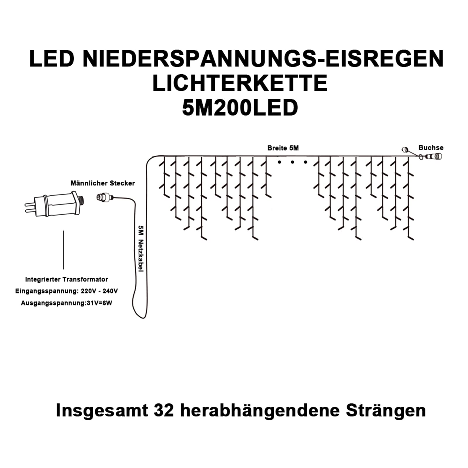 String lights Ice rain Outdoor, 5m 200 LED light curtain LED with timer, IP44 waterproof 8 modes for indoor outdoor Christmas, Bedroom, Party, Wedding, Balcony, Garden Decoration
