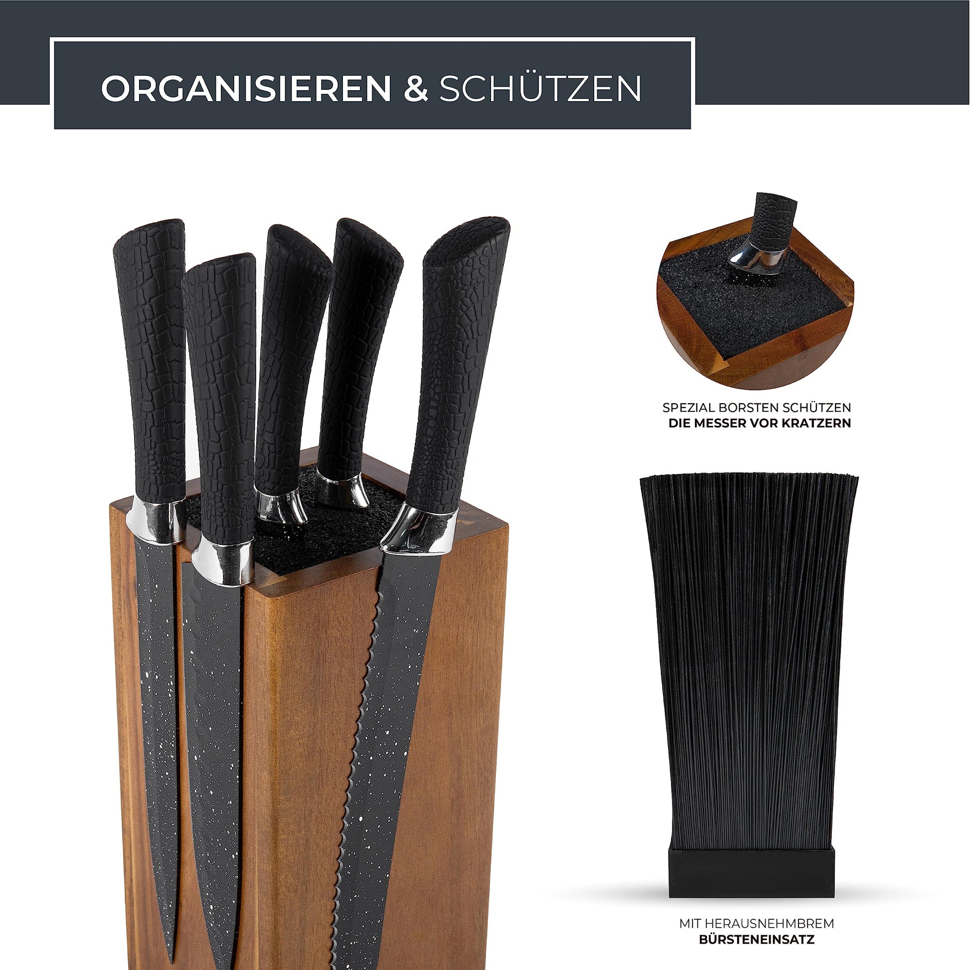 πππππππππ: Our acacia wood magnetic knife block offers a reliable storage solution for your knives. The two rows of strong magnets ensure a secure hold, keeping your knives safe and preventing them from slipping or falling.","ππππππππππ πππππππππππ: Thanks to the fine bristles, our magnetic knife block protects your knives effectively from scratches and damage, preserving the sharpness and durability of your knives. This makes our knife storage an essential part of your kitchen.","πππ-ππππ-πππππππ: With a smooth 360-degree rotating function, our magnetic knife block allows easy access to your knives from any angle. Say goodbye to the tedious search for the right knife and simply rotate the block to conveniently select the desired knife.",":ππππ ππππππππππππ: Made of high-quality acacia wood, our wooden knife block is an elegant and functional addition to your kitchen countertop. The natural grain and refined surface of our magnetic knife holder bring style and functionality to your kitchen."]