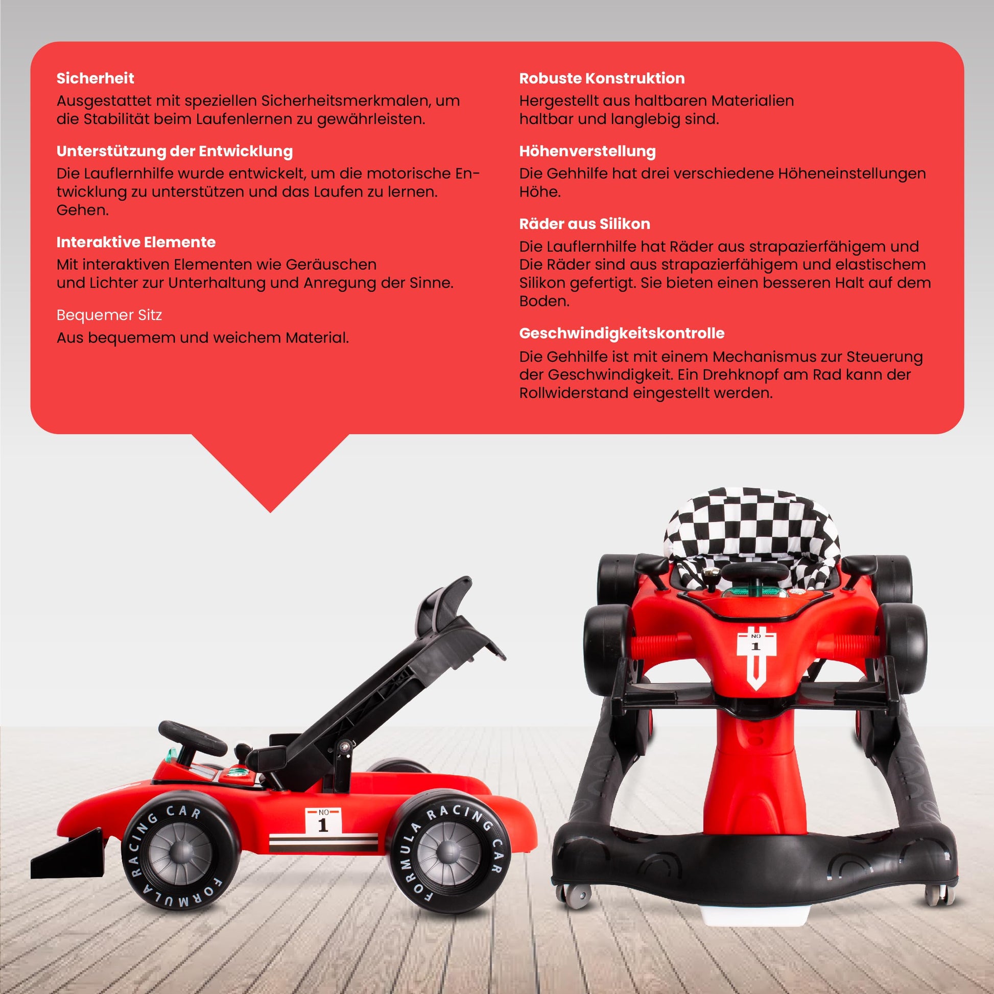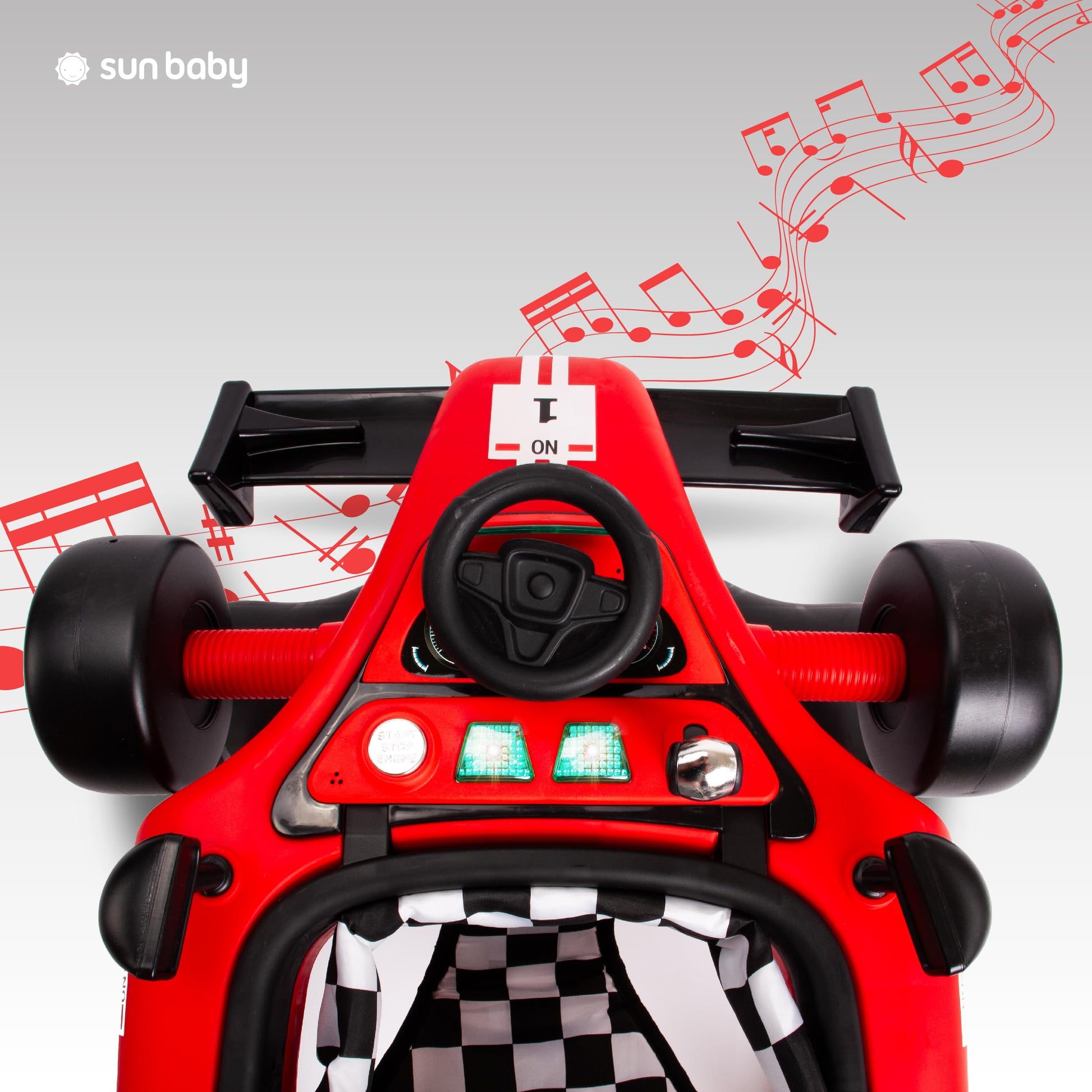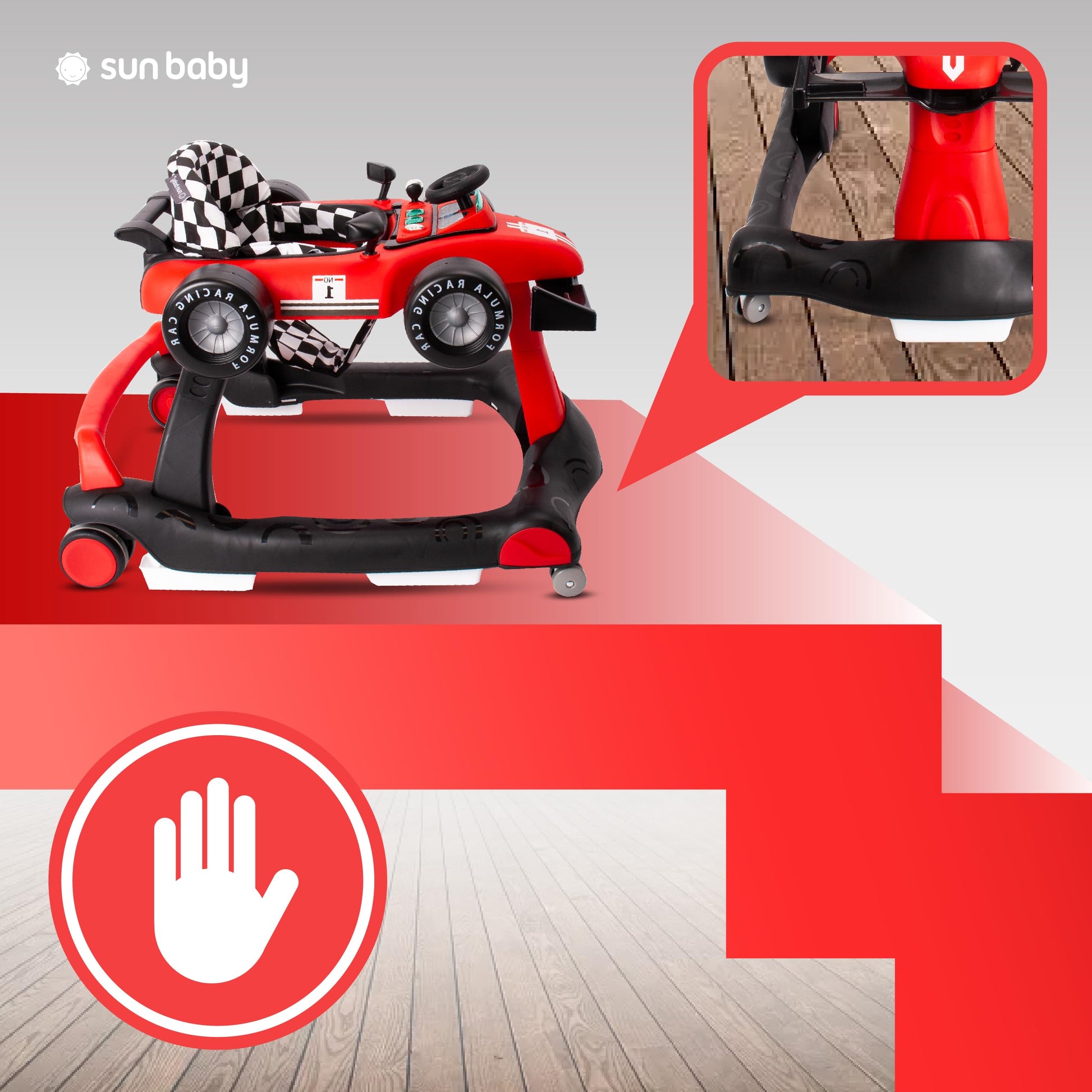 Sun Baby 3in1 Walker with adjustable height, Formula racing design, interactive features, foldable with safety stopper, buttons, lights, and sounds for babies 6 months and up (Red)
