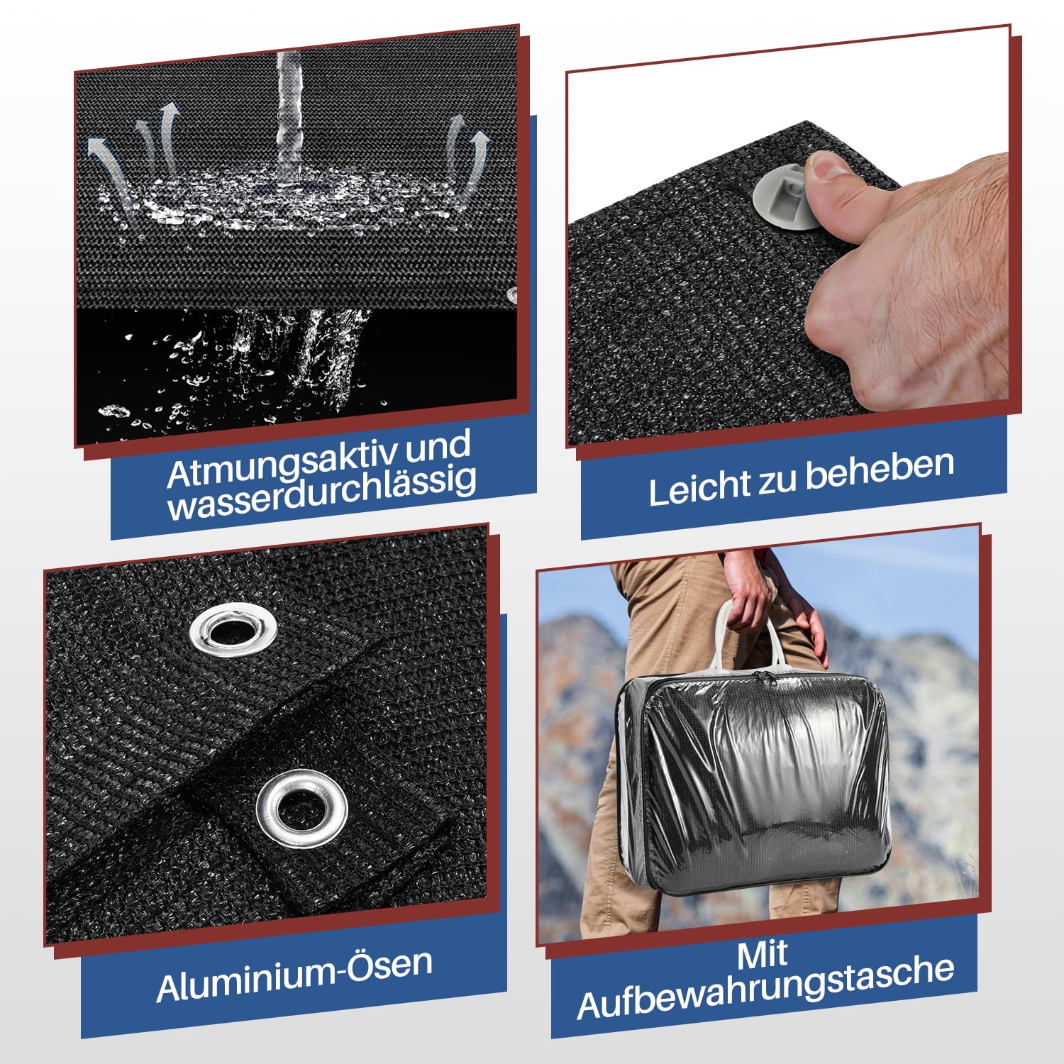 Sun World awning carpet 250x550cm, High-quality camping mat, Breathable non-slip tent carpet in black, Outdoor camping mat with 12 holes, 13 pegs, and carrying bag.