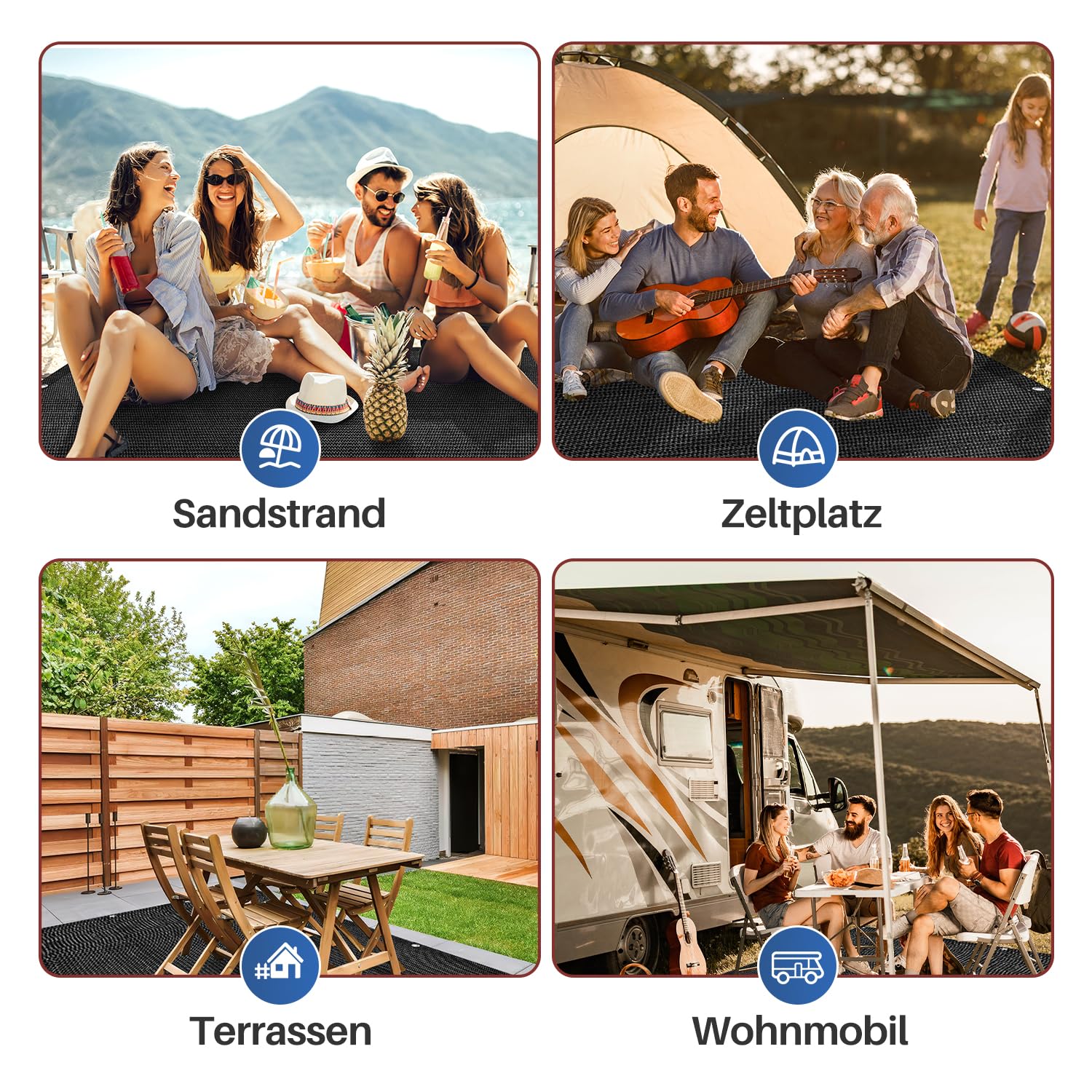 "✅【High-Quality Material】The durable awning carpet made of HDPE (240 g/m²) is durable, non-slip, moisture-resistant, wear-resistant, and dirt-resistant; it can also resist UV rays and is not easy to fade, tear, washable, and quick-drying. High-quality materials can significantly improve your experience.",