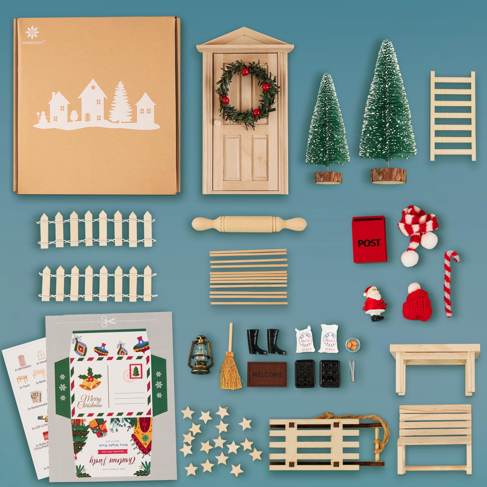 SUNBEAUTY Elf Door Set Complete with elf letters, including baking set, mailboxes, signs, and other accessories. Christmas decoration for children's rooms, DIY gift for kids at Christmas.