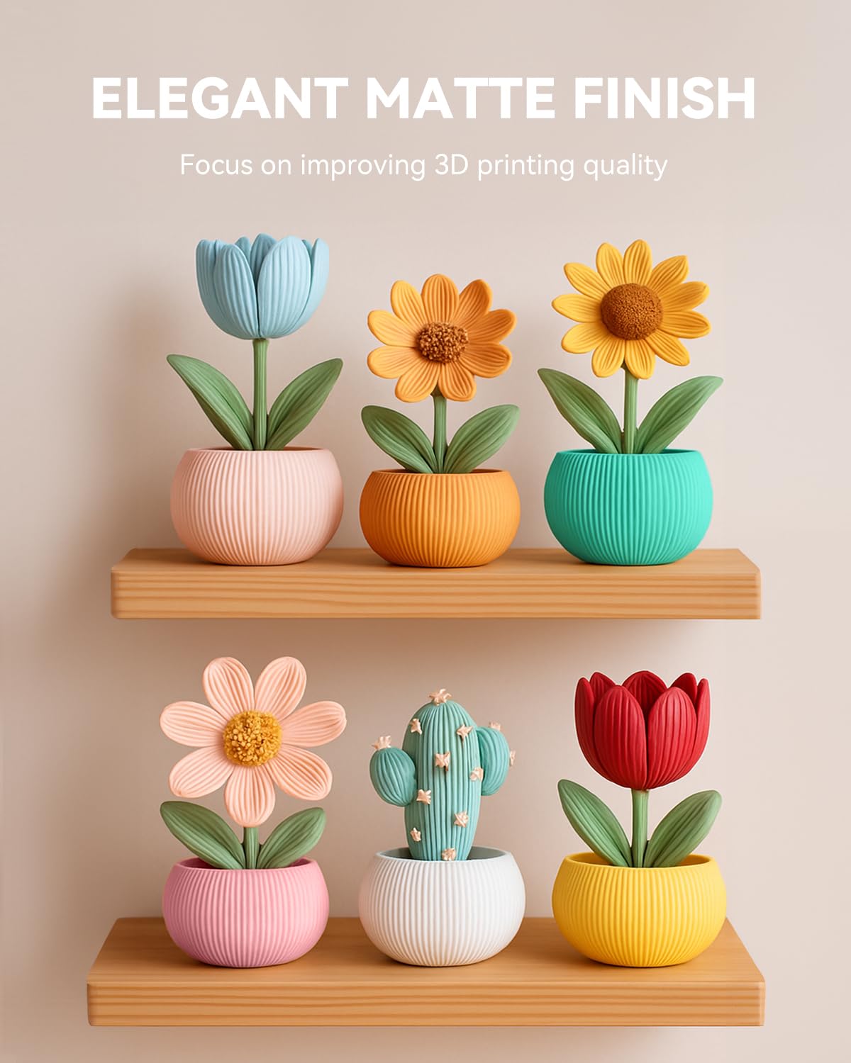 "②【Smooth, Matte Finish】Our High Speed PLA Matte offers a velvety texture in museum quality - without shine, without grain - simply flawlessly finished surfaces.",