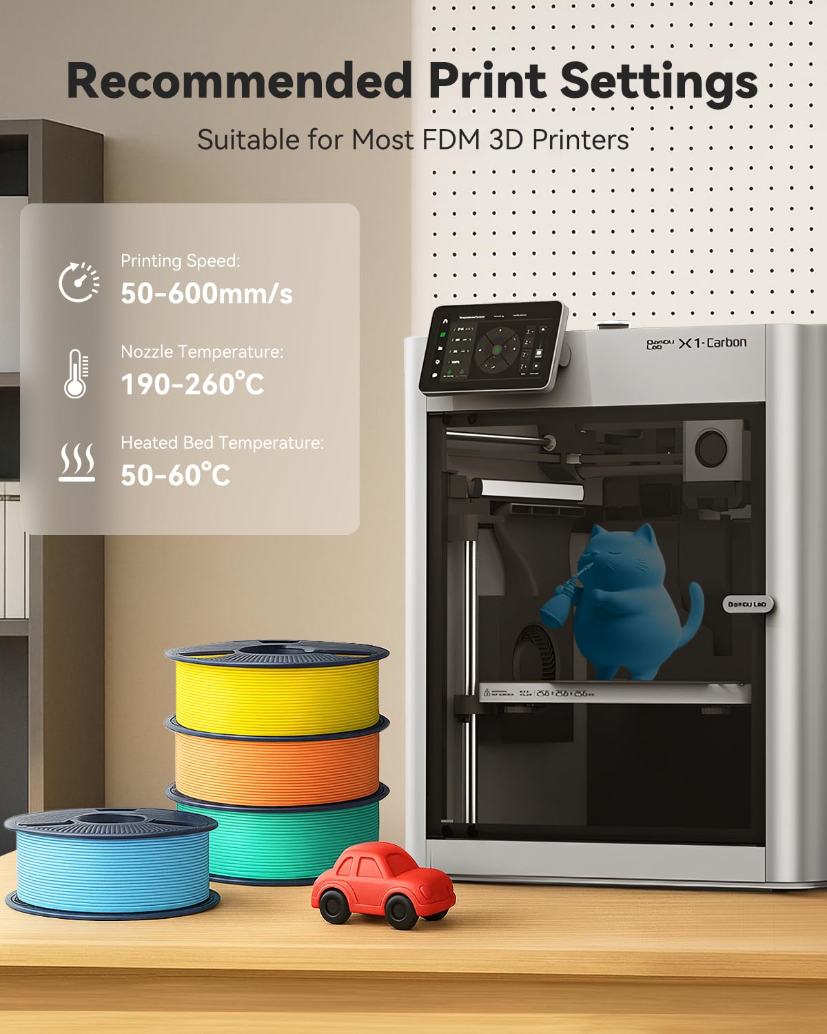["①【600 mm/s Hyper-Speed Printing】SUNLU High Speed Matte PLA achieves three times faster printing speeds than standard matte PLA (average 200 mm/s), shortening production time without layer errors.",