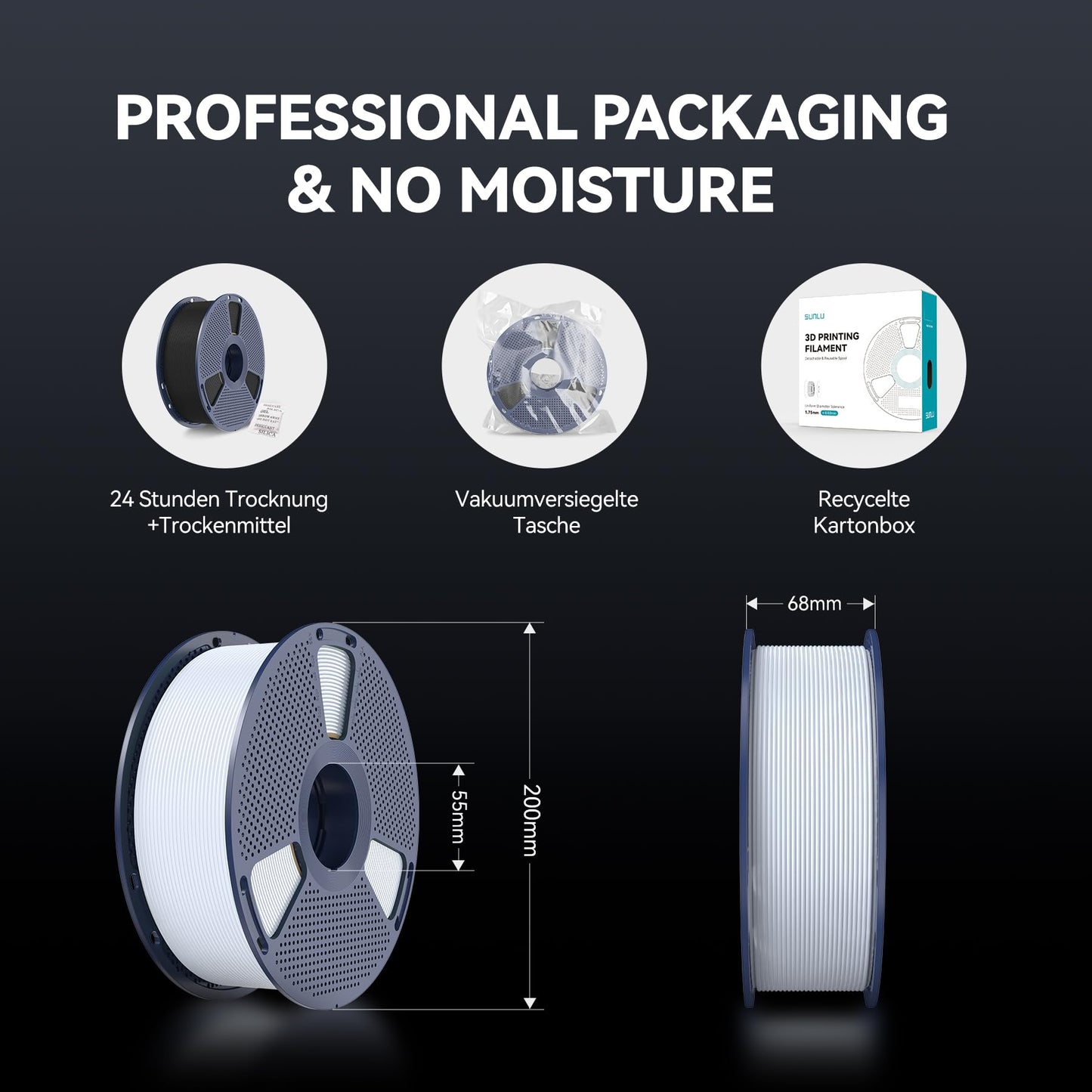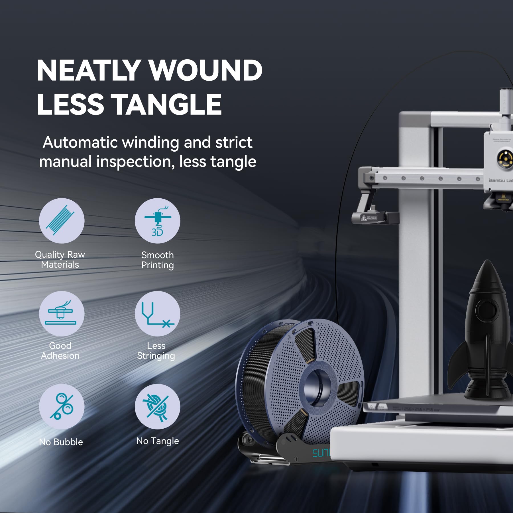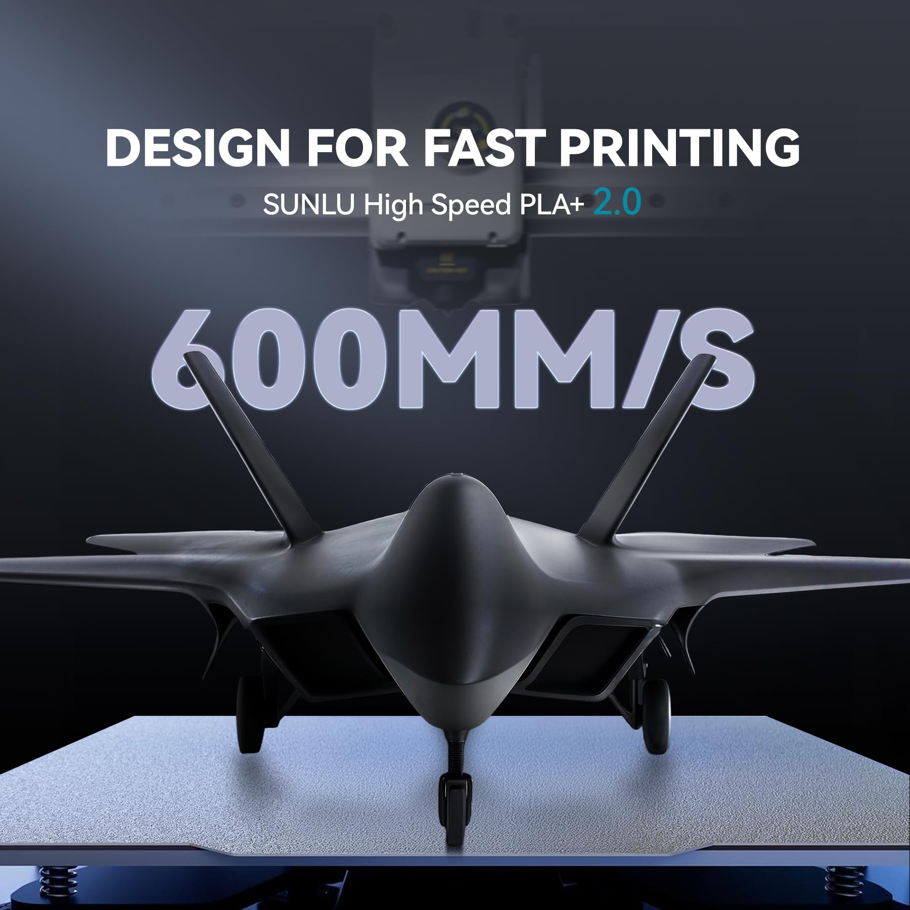 ["①【Design for fast printing】- SUNLU High Speed PLA Plus 2.0 Filament offers the ideal balance between speed and print quality, paired with a high-speed FDM 3D printer, it supports speeds of up to 600 mm/s","②【Superior toughness】- The high elongation at break of Rapid PLA Plus provides excellent toughness, making printed works resistant to brittleness and cracking, thus durable and reliable","③【Designed for uniform flow】- The optimized melt flow ensures clog- and string-free high-speed printing, producing accurate models with excellent surface quality and structural integrity.","④【No warping and tearing】- Fast Printing PLA+ with updated formula of version 2.0 ensures excellent bed adhesion and layer bonding, reducing warping and tearing on printed products","⑤【High Accuracy】- Calibrated precisely to 1.75 mm ±0.02 mm thanks to an automated laser system, SUNLU filament guarantees perfect roundness and consistent diameter, ideal for 3D printers."]