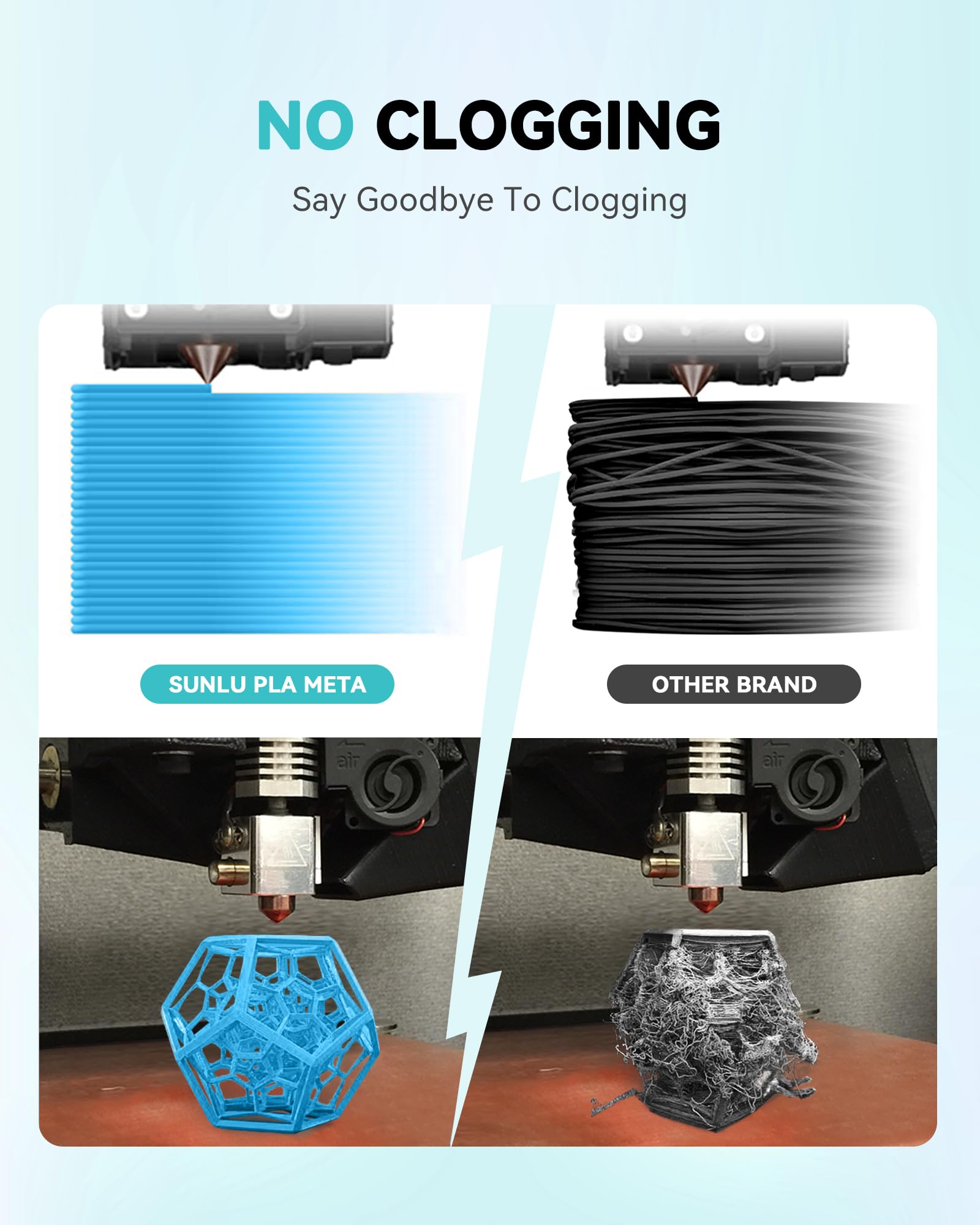 ["①【Shiny Surface】SUNLU PLA Meta offers a smooth, shiny surface and minimizes post-processing, enhancing the visual appeal of your 3D prints.","②【Impact Resistant】Provides exceptional durability, making SUNLU PLA Meta ideal for parts that need to withstand impacts and rough handling.","③【Excellent Fluidity】Designed for superior flow properties, SUNLU PLA Meta ensures smooth extrusion and high-quality prints in 3D printing.","④【Fast Printing Speed】SUNLU PLA Meta is 1.5 times more fluid than regular PLA, allowing for faster printing speeds and smoother extrusion.","⑤【Macaron Color Series】SUNLU PLA Meta offers an impressive range of soft, pastel-colored Macaron tones, perfect for creative, aesthetic, and decorative 3D printing projects.","⑥【Lower Printing Temperature】Optimized for lower printing temperatures, SUNLU PLA Meta reduces energy consumption and improves user-friendliness in 3D printing.","⑦【Superior Layer Adhesion】Ensures strong bonds between layers for durable and reliable end products with SUNLU PLA Meta.","⑧【Minimal Shrinkage】Reduces warping during cooling and ensures precise dimensions and a clean finish with SUNLU 3D printer filament.","⑨【Wide Compatibility】Works seamlessly with most FDM printers, providing versatility for different setups in 3D printing.","⑩【Minimal Odor】Emits little odor during printing, making SUNLU PLA Meta suitable for use in enclosed spaces during 3D printing."]