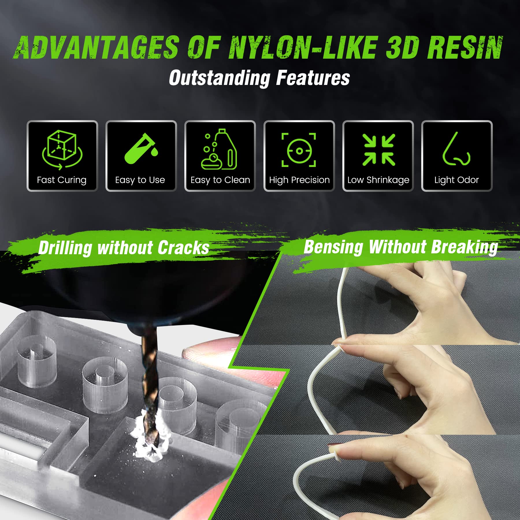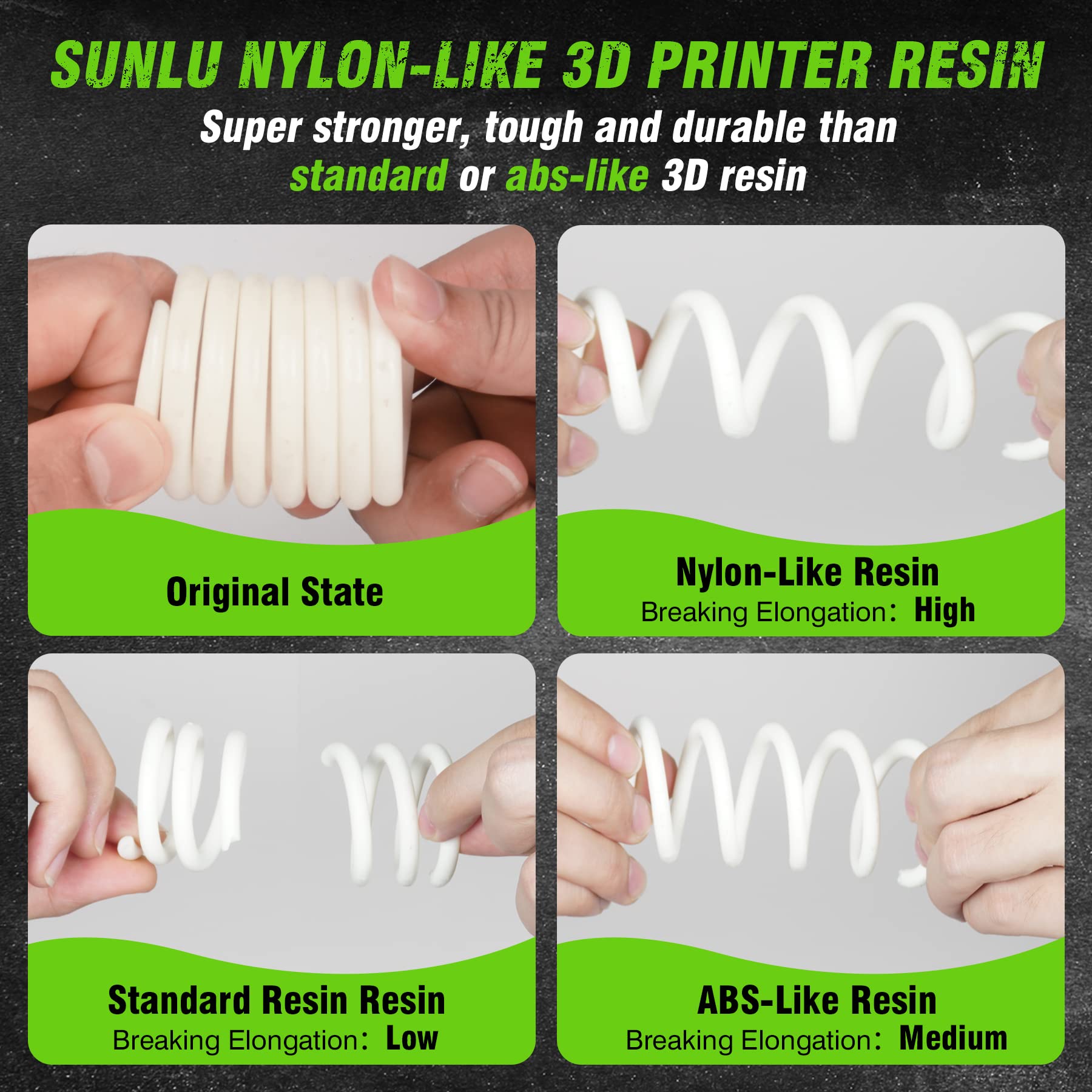 SUNLU Nylon-like 3D printing resin, high strength and durable photopolymer resin for LCD/DLP/SLA printers, 395-405nm UV curing, great for functional parts, prototypes, 1000G Grey.