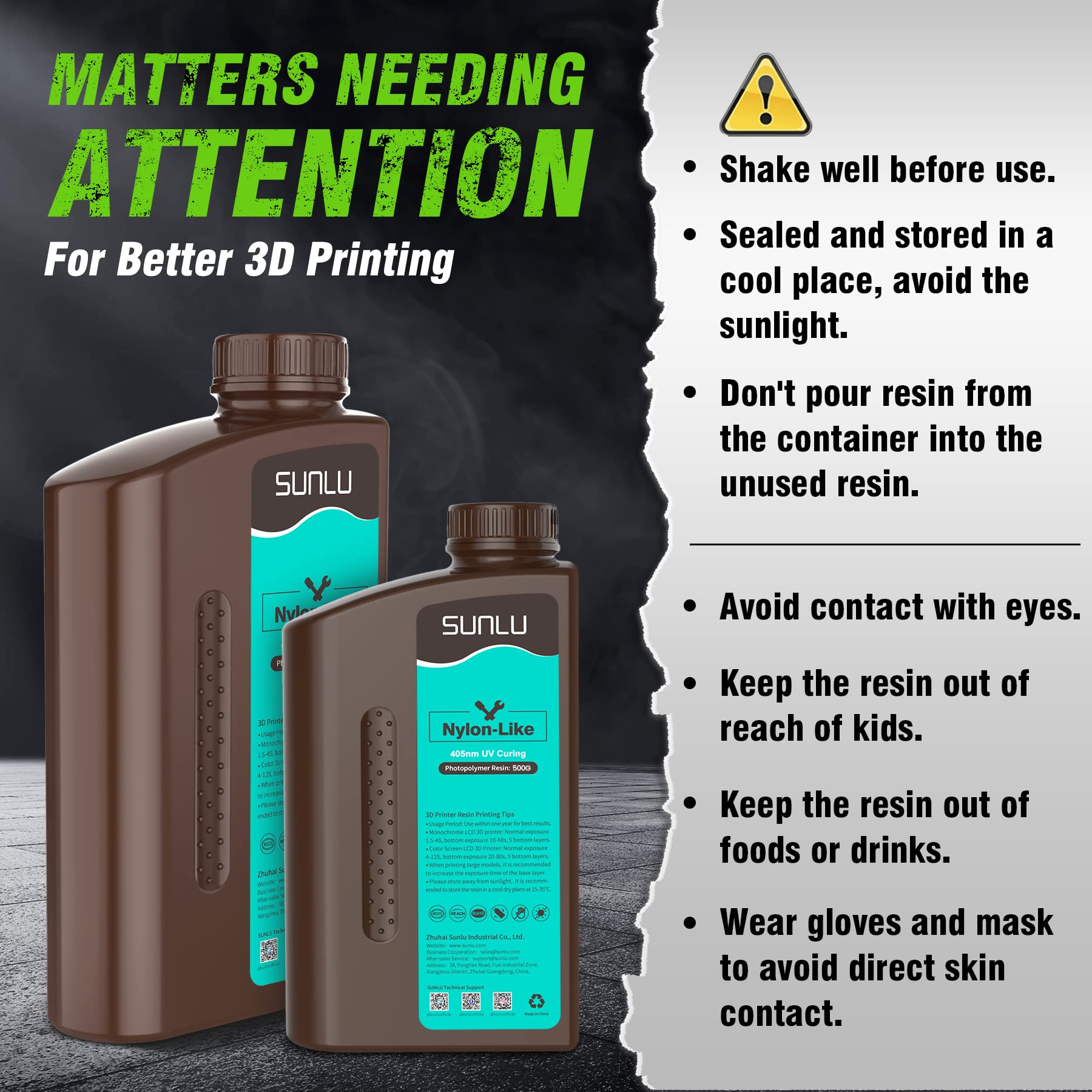 ["① 【SUNLU 3D Standard Resin】Sunlu resin is a liquid that can cure into a solid polymer, containing the photoinitiator that cures when it absorbs 405nm UV light from a resin printer (or resin curing machine).",