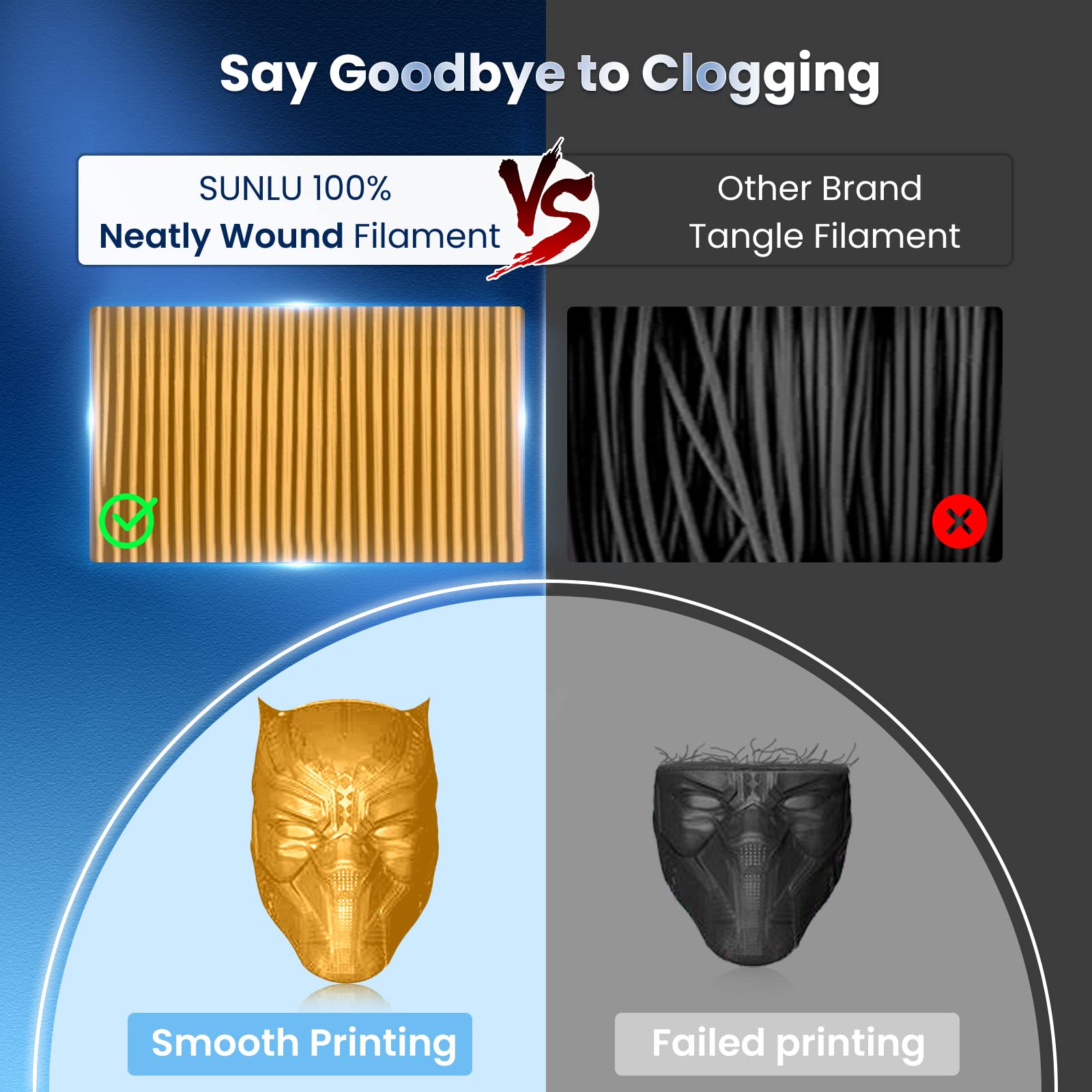 ["①【Advantages of PLA+】PLA+ is stronger than regular PLA, has more vibrant colors, and many benefits such as no clogging / no bubbles / no tangling / no warping / no stringing. It is easy to use and has better layer adhesion.","②【Neatly Wound Filament&Smooth Printing】SUNLU 3D printer filament, perfect roundness and very tight diameter tolerances, good winding, no overlap or entanglement. Uniform and consistent feeding without clogging of nozzles or extruders. Improves 3D printing success rate.","③【Precision and Consistency】Full mechanical winding and manual inspection ensure that these SUNLU PLA PLUS PLA+ filaments have strict tolerance, with 1.75mm diameter and accuracy of +/-0.02 mm.","④【Spool Dimensions】Diameter: 8 inches; Width: 2.5 inches; Hole Diameter: 2.2 inches. SUNLU filament spools are compatible with most common 3D printer filament holders.","⑤【After-Sales Guarantee】SUNLU is a high-tech company specializing in research and development, production, and distribution of 3D printing filaments, 3D printers, and various 3D printing materials such as PLA, PETG, etc. Choose SUNLU and buy risk-free."]