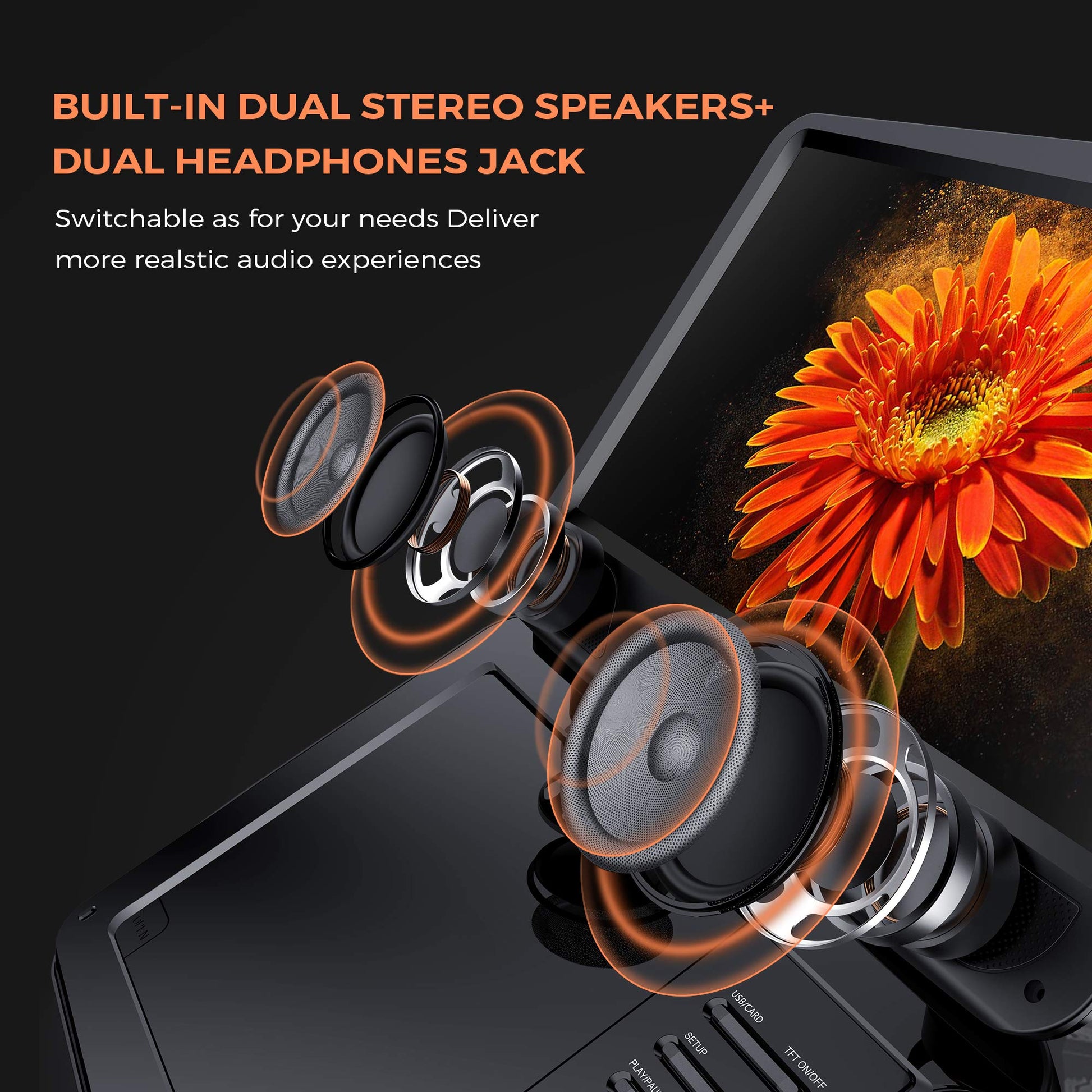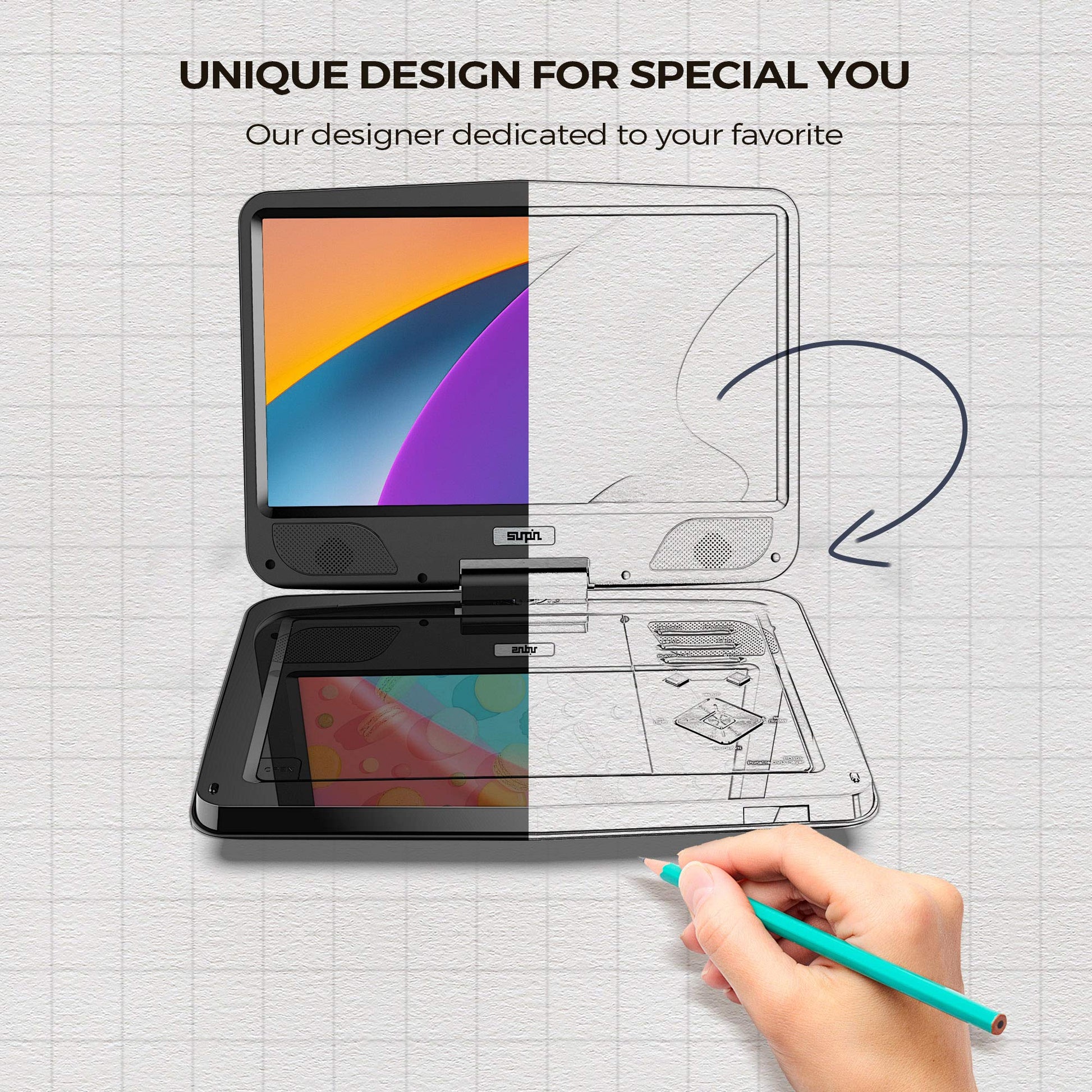 SUNPIN 12.5-inch Portable DVD Player with 10.5-inch HD Swivel Screen, Stereo Speakers & Dual Headphone Jack, Supports Sync TV/USB/SD Card, Car Headrest Mount, Black.