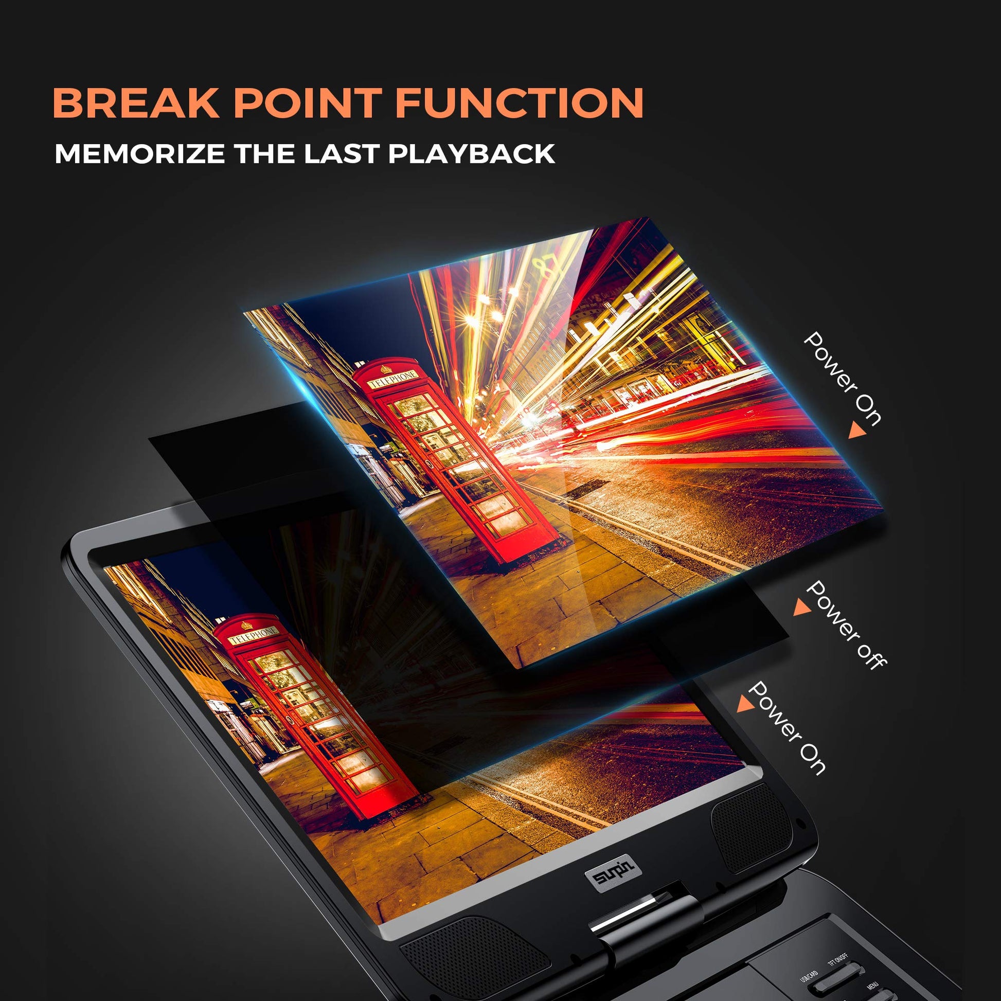 "PORTABLE DVD PLAYER WITH 12.5\" HD SCREEN: Enjoy clear pictures on a large 12.5-inch display with 270° rotation and 180° flip function – this portable DVD player is perfect for travel, car, and home.","DVD PLAYER FOR CAR WITH 6 HOURS PLAYTIME: Equipped with a 5000mAh battery, the car DVD player offers up to 6 hours of playback time – ideal for long car rides with children or on the go.","REGION FREE DVD PLAYER – UNIVERSAL COMPATIBILITY: Plays DVDs, CDs, VCDs, and files from USB & SD cards (up to 32GB). The region-free DVD player supports media from all regions (except Blu-ray).","AV OUTPUT & STEREO SPEAKERS – MADE FOR SHARING: Connect the player to a TV via AV-Out or use the built-in speakers. Perfect for family movies or entertainment on the go.","EASY OPERATION – IDEAL FOR KIDS AND SENIORS: With remote control, clear menu, and non-slip handle, this car DVD player is easy to operate for kids – from young to old."