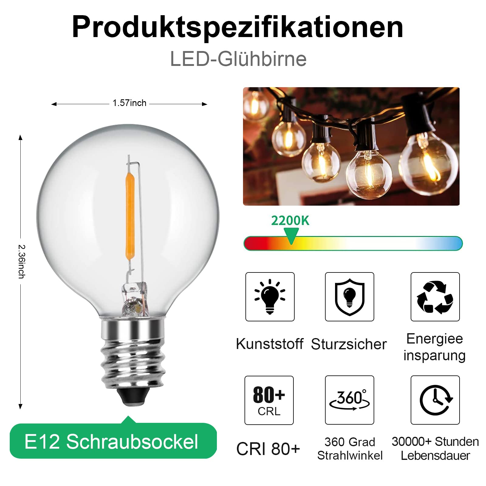 ["General Energy Saving Lamps】G40 tungsten lamps, suitable for E12 and C7 sockets, each lamp has a power of 7 W / 220 V, energy-saving and environmentally friendly lamps extend the life of use","【Easy Installation】G40 tungsten bulb Round incandescent lamp with E12 screw base design, easy and convenient to use","【Retro Nostalgic Design】G40 Clear Globe Replacement Bulbs Made of transparent glass, globe with round light bulb"]