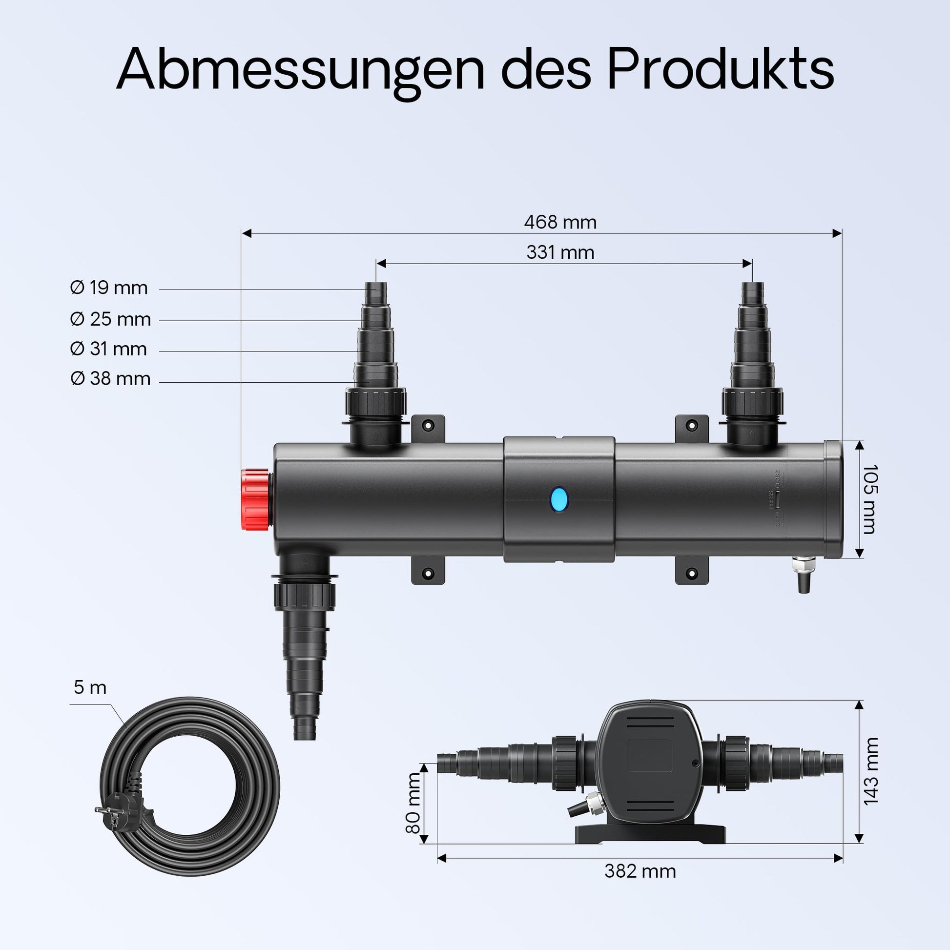 "Easy integration - Thanks to universal connections, effortless installation into any existing pond system is possible, without additional complications or changes to the existing setup."]
