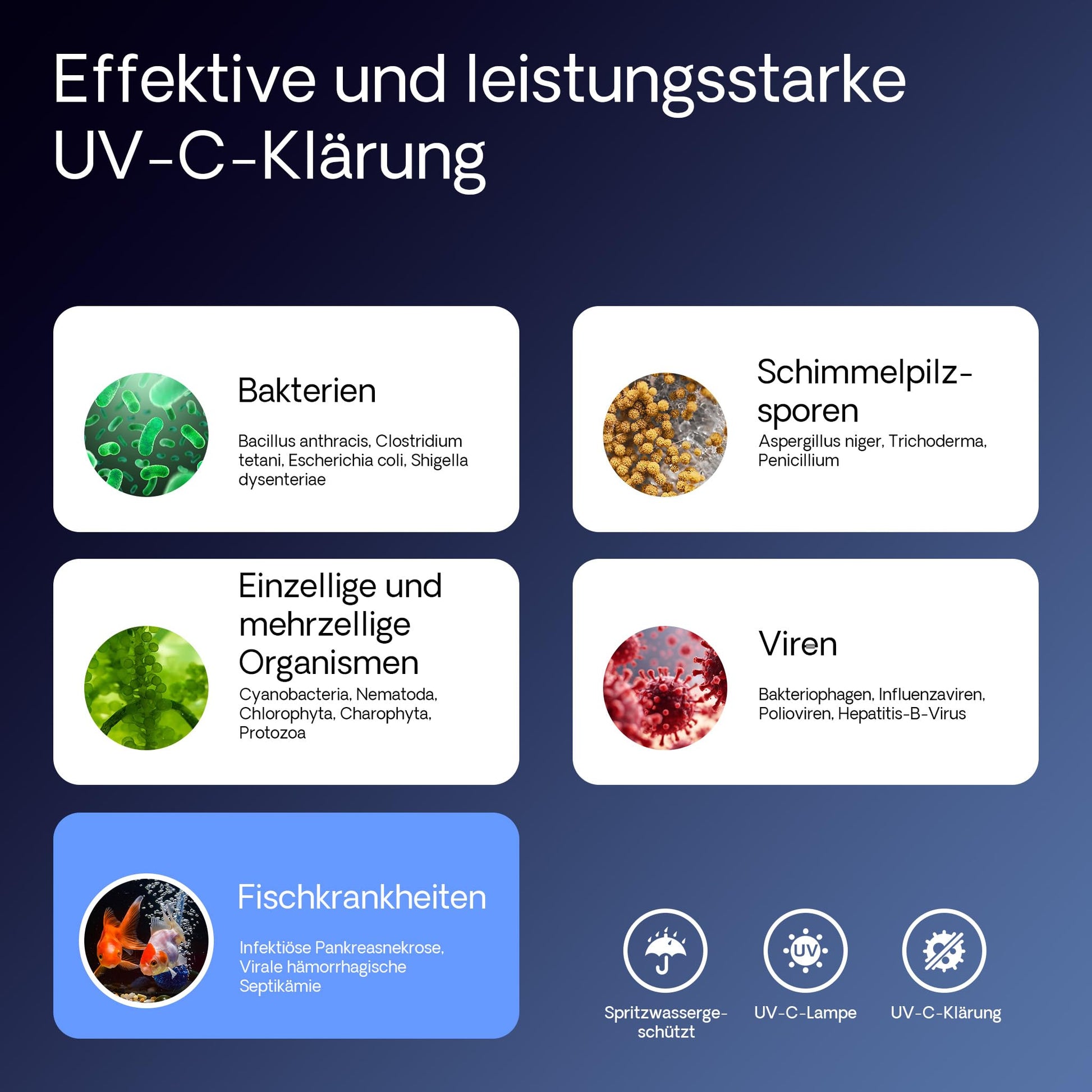 ["Effective algae control - Reduces algae growth and effectively prevents the formation of bacteria and mold in pond water, improving water quality and the ecosystem.",