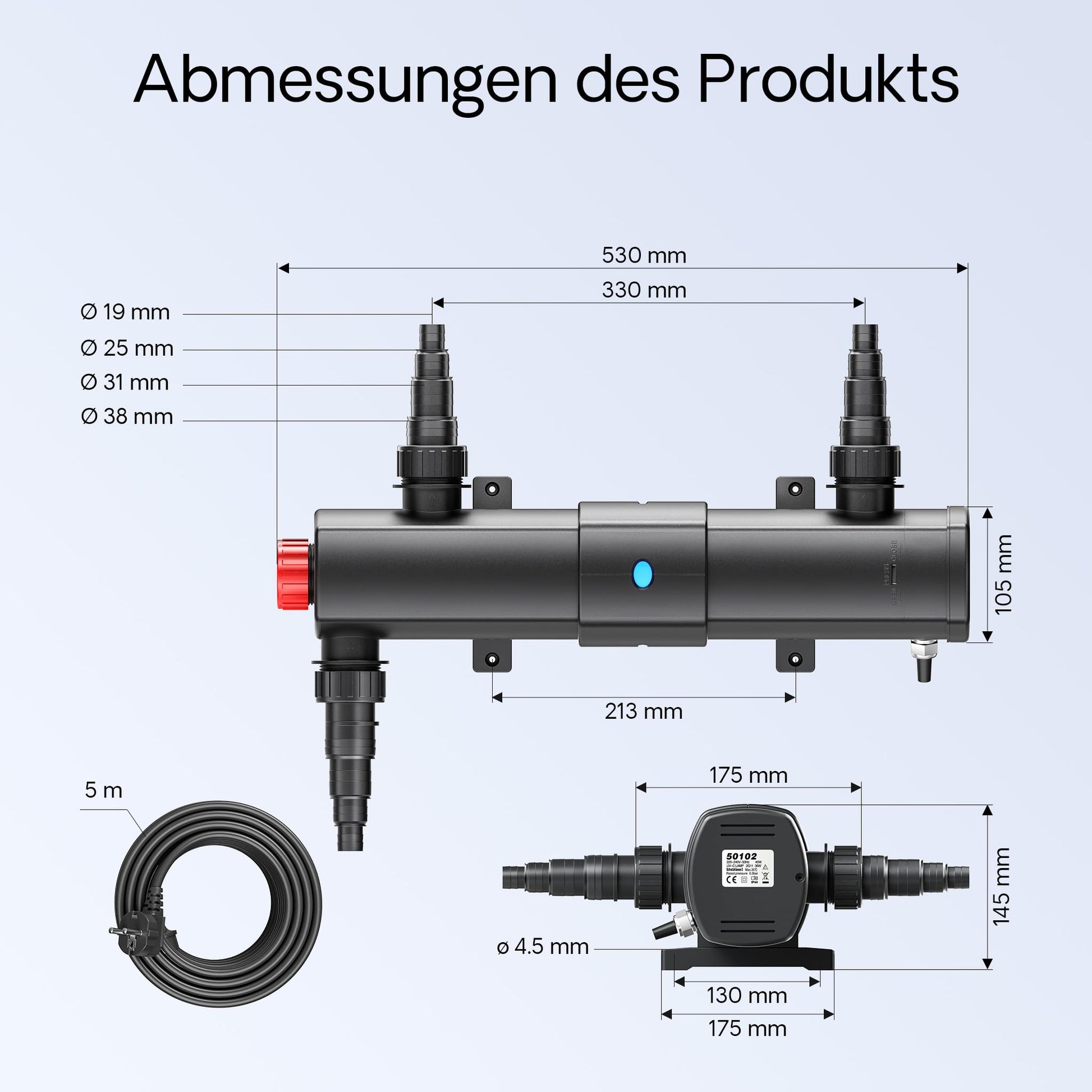 "Easy Integration - Thanks to universal connectors, effortless installation in any existing pond system is possible without additional complications or changes to the current setup.",