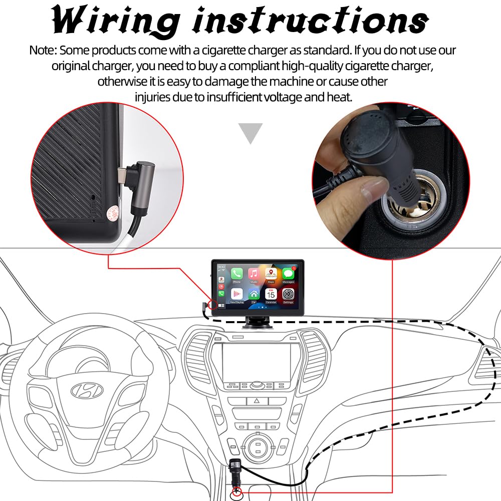 【Easy to Install】 This Carplay car radio with 7-inch screen can be securely attached to your dashboard with a suction cup or mounted on the windshield with a strong suction cup, plug-and-play. Compared to general car radio Bluetooth 12V voltage settings, this non-embedded car radio with navigation has a working voltage of 7-32V.