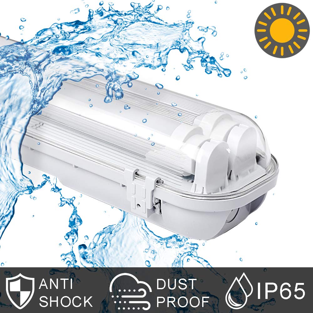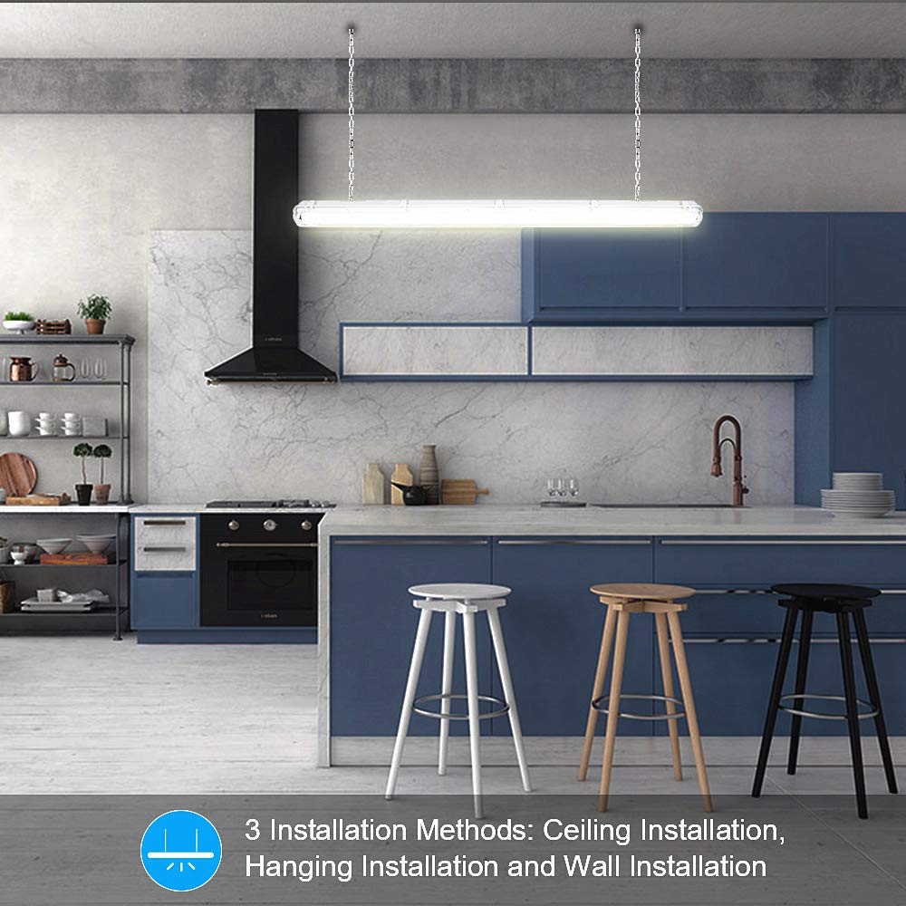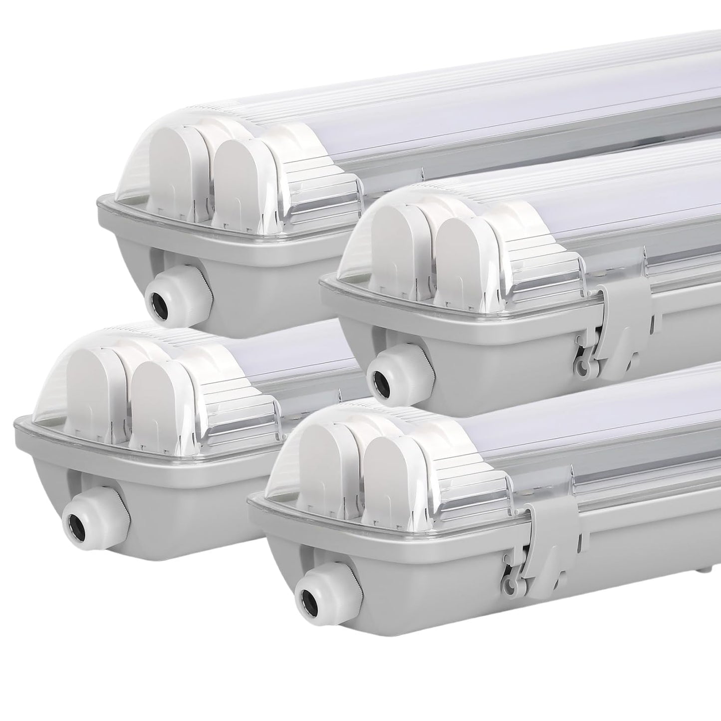 ["🌟Highly Efficient Lamps: 59 inch LED moisture-proof luminaire are very efficient, these tubes consume 2x24 watts and produce 4800 lumens, making LED fluorescent lamps an alternative to 480 watt fluorescent lamps. Non-dimmable, 4000k-4500k. (per piece)","🌟50000H Long Lifespan: LED technology ensures a super long lifespan of 50000H for the tube lamp. Compared to traditional fluorescent lamps, you will need to replace the LED moisture-proof luminaire less frequently. Additionally, it is virtually maintenance-free, saving you time and effort.","🌟IP65 Waterproof: The moisture-proof luminaire is certified waterproof to IP65, which means it is protected against dust and water jets. It can be easily installed in high humidity environments or even splash water without affecting performance.","🌟Versatile Application: Thanks to its robust design, the moisture-proof luminaire is suitable for various applications, both in residential and commercial settings. It can be used in workshops, factories, warehouses, bathrooms, laundry rooms, garages, and basements.","🌟Easy Installation: The workshop lamp comes with all the accessories you need for simple installation. You can easily attach it to the wall or ceiling. The included mounting materials and instructions make installation a breeze."]