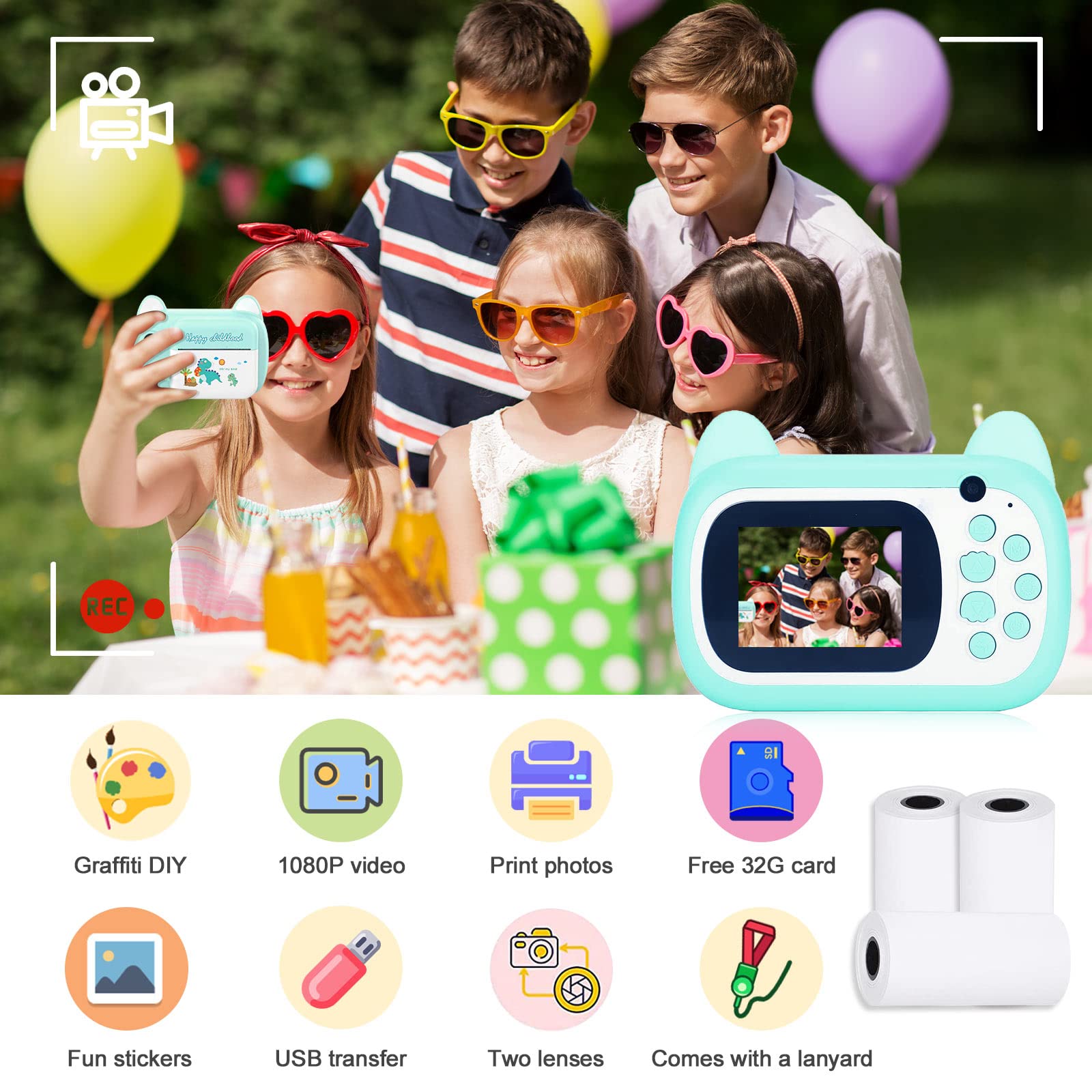 SUPBRO Kids Camera, Selfie Camera with 2.4-inch Big Screen 1080P HD Instant Print Camera 32GB Digital Camera for 3-12 Year Olds Birthday Gift