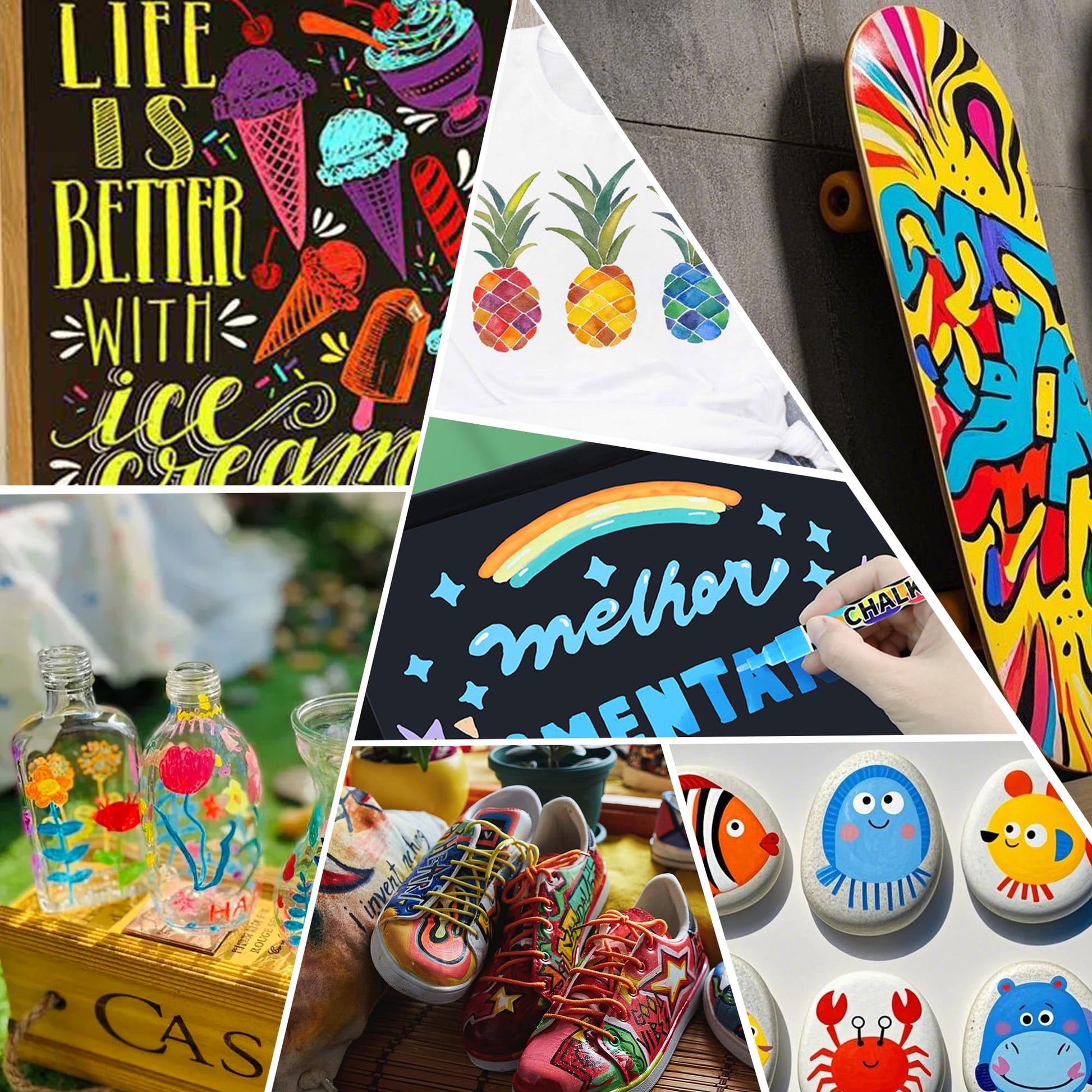 ["ποΈπ28 Beautiful Opaque Colors for Kids: SUPERSUN chalk markers for windows Christmas is the best gift for your kids at Christmas, Thanksgiving, Halloween, birthday party and the list goes on. Unlike other cheaper products with watery ink, these chalk markers have beautiful opaque colors!","ποΈπ Easy Wiping On Smooth Surfaces: Strong colors on a variety of surfaces! Excellent bright neon colors! Whether it's windows, whiteboard, chalkboard, or glass - the chalk markers can be used as whiteboard markers, glass markers, and window markers and bring out brilliant colors.","ποΈπ Durable on Rough Surfaces: Our chalk markers can be easily wiped off with a damp cloth. No scrubbing, scratching, or dealing with harsh cleaning chemicals. They are not waterproof, which is beneficial for dirty hands. However, these markers are durable on rough surfaces and not easy to remove, please note this.","ποΈπ Non-Toxic & Safe: No harmful ingredients, odorless, and completely dust-free! So you can use our markers safely wherever your creativity flows. The chalk markers are not only safer than traditional chalk.","ποΈπ Reversible Tip: Round tip & chisel tip in one! Switch between the two most common variants with a simple movement to unleash your creativity. This way, you can create any artwork!"]