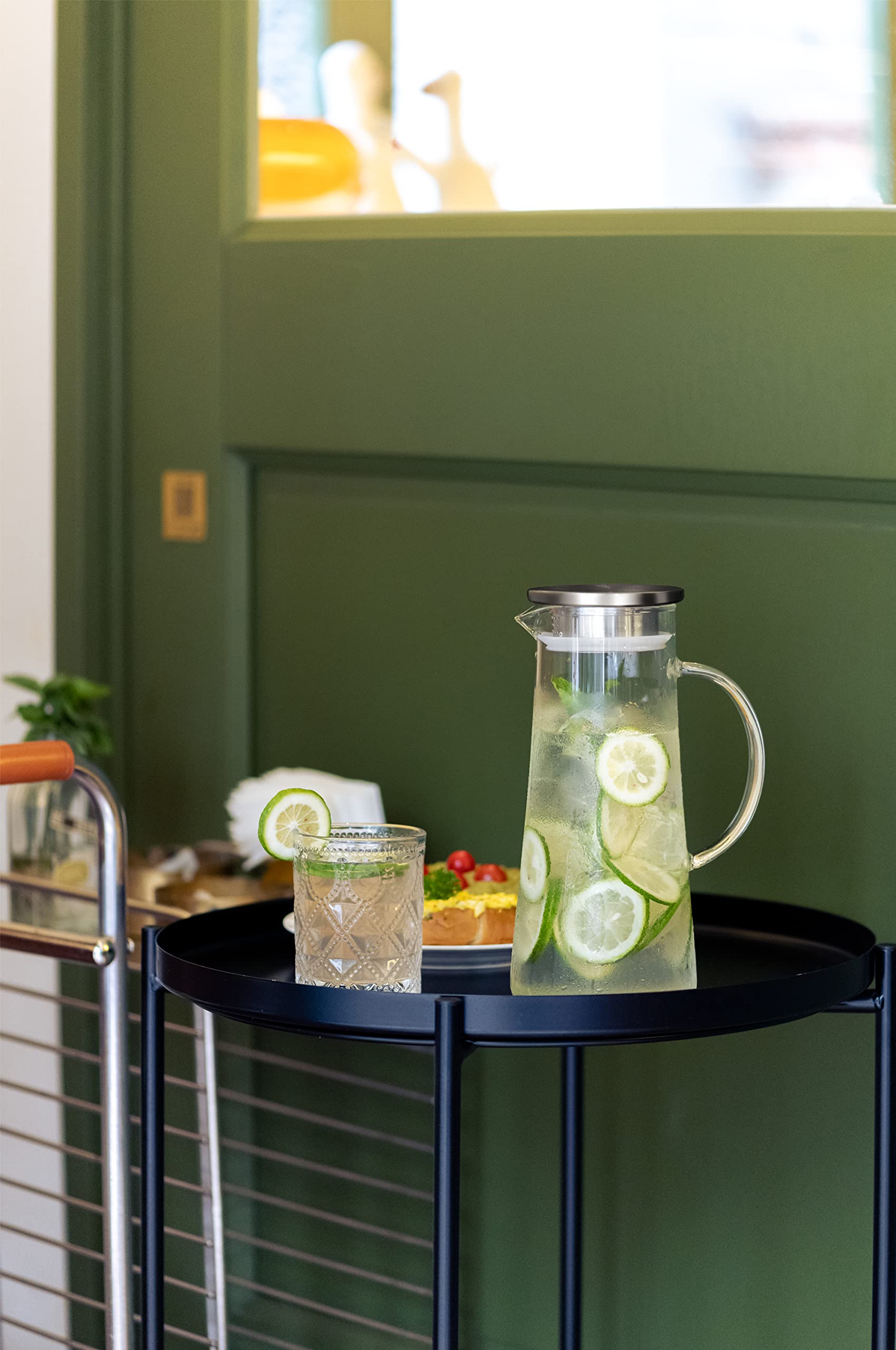 Designed for homemade drinks: This glass carafe comes with a lid made of 18/8 stainless steel with two openings, which can be adjusted as needed, allowing you to easily store fruit and ice cubes or pour drinks quickly. The drip-free spout and ergonomic handle make pouring a breeze, and the food-grade silicone around the lid fits snugly against the body of the jug to prevent wetting the countertop.