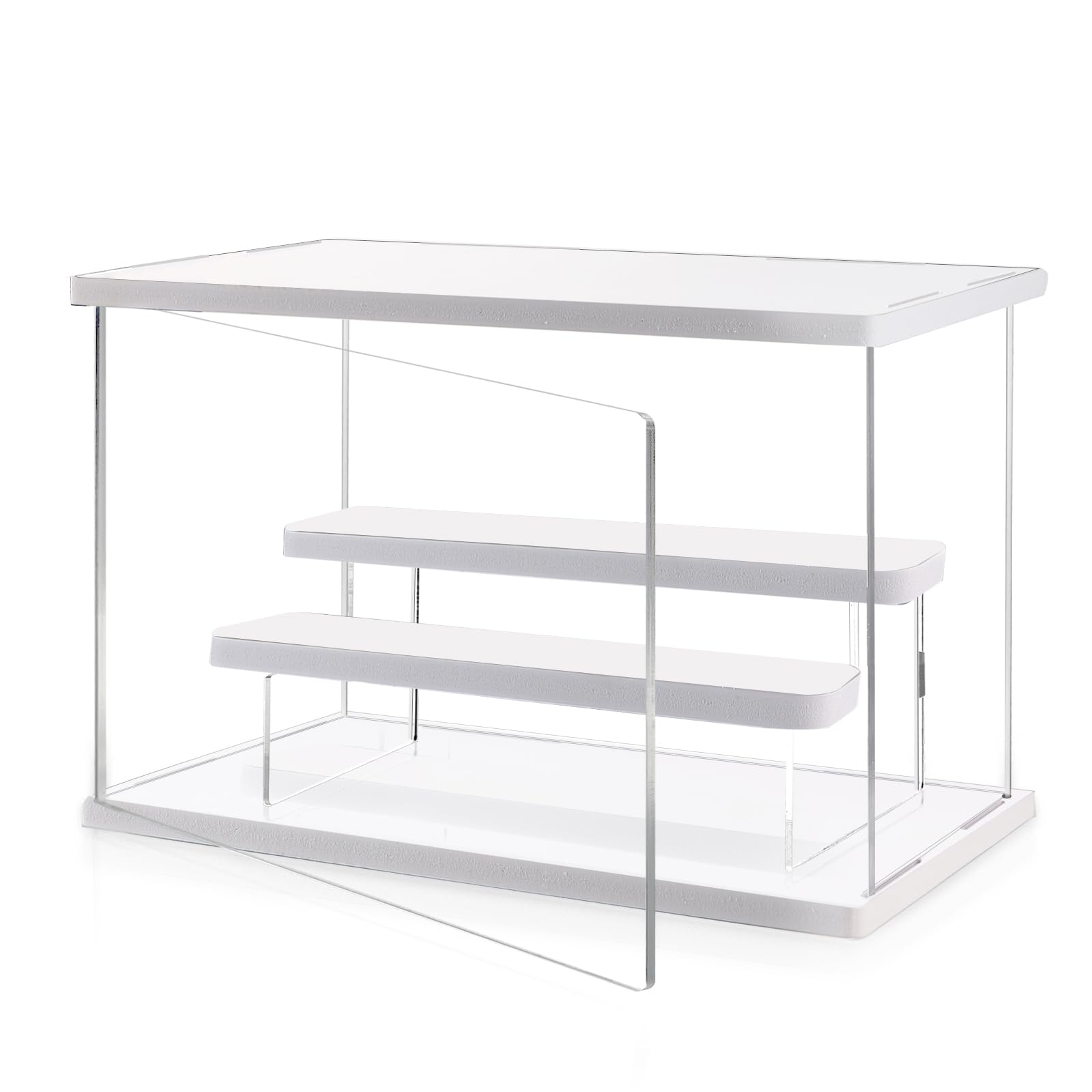 ["High-quality Acrylic Display Case made of high-quality acrylic (3 mm thickness) and white PVC board (10 mm thickness), finely polished. It has smooth edges, is simple and beautiful, easy to clean, colorless, odorless, non-toxic, and durable.","Invisible Design: invisible design for opening and closing outward without a handle! The innovative design allows for a clear 360° view of the collection without affecting the display in any way! 95% light transmittance makes the content clearly visible and protects the display from dust.","Double-layered Staircase: The inside of the showcase display case is equipped with a double-layered staircase where you can showcase your favorite figures, action figures, small models, statuettes, crafts, or car models. The ladder can also be removed to make room for larger collector's items. It is great for use in store counters, exhibition halls, and home collections.","Easy Assembly: The top and bottom of the acrylic display case are white and all four sides are transparent. The installation is easy and quick. Both sides of the acrylic plate are protected with a protective film. Please remove it before use! A small cleaning cloth is included.","Best Customer Service: We value customer satisfaction greatly. If you have any issues with our showcase display case, you can reach us through \"Your Orders\", then \"Order Problems\", and finally \"Contact Seller\". We will provide you with the best customer service."]
