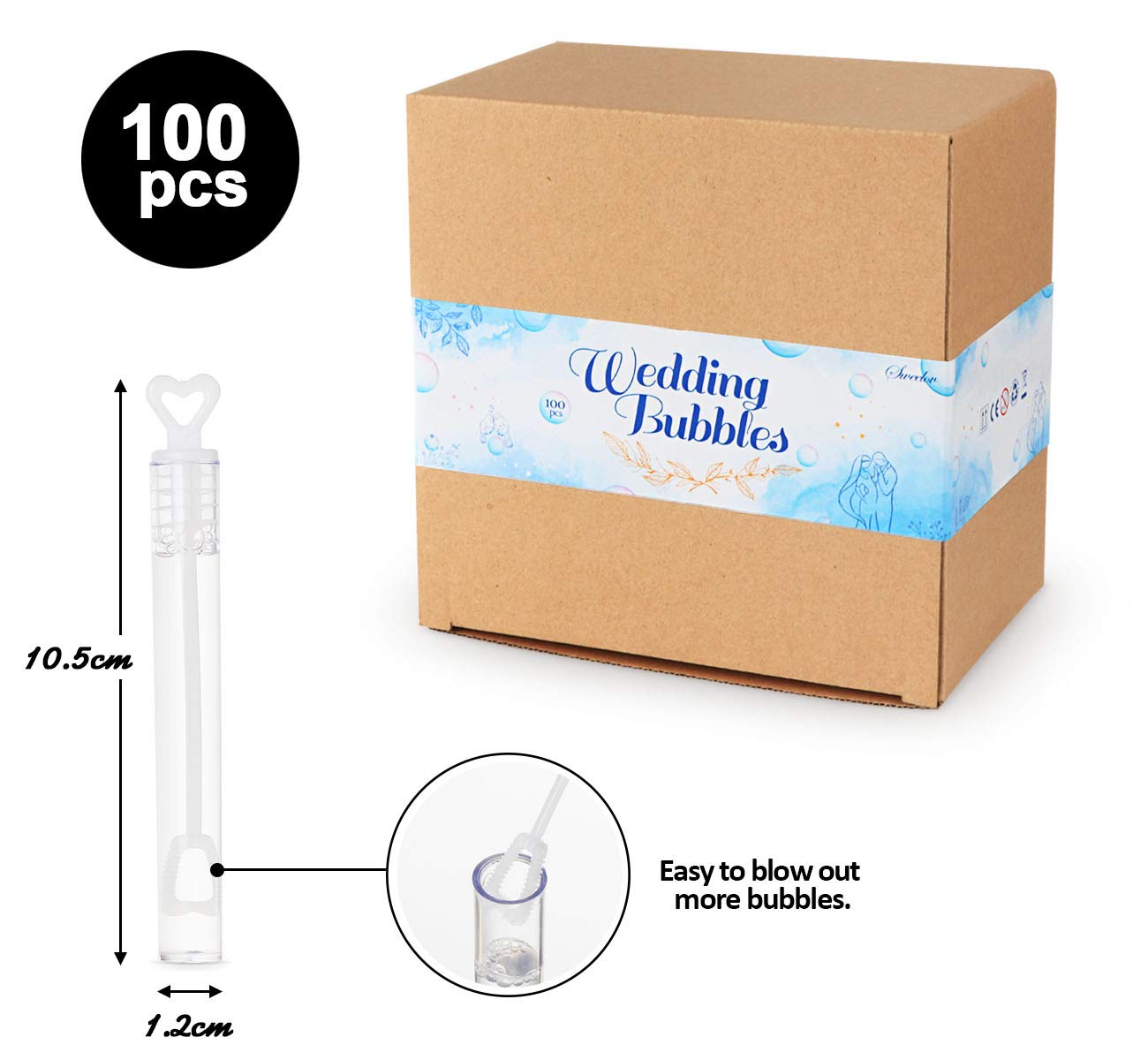 Sweetlove 100 Pieces Wedding Bubbles Filled with Heart Handle for Wedding and Birthday Parties, Stain-Free.
