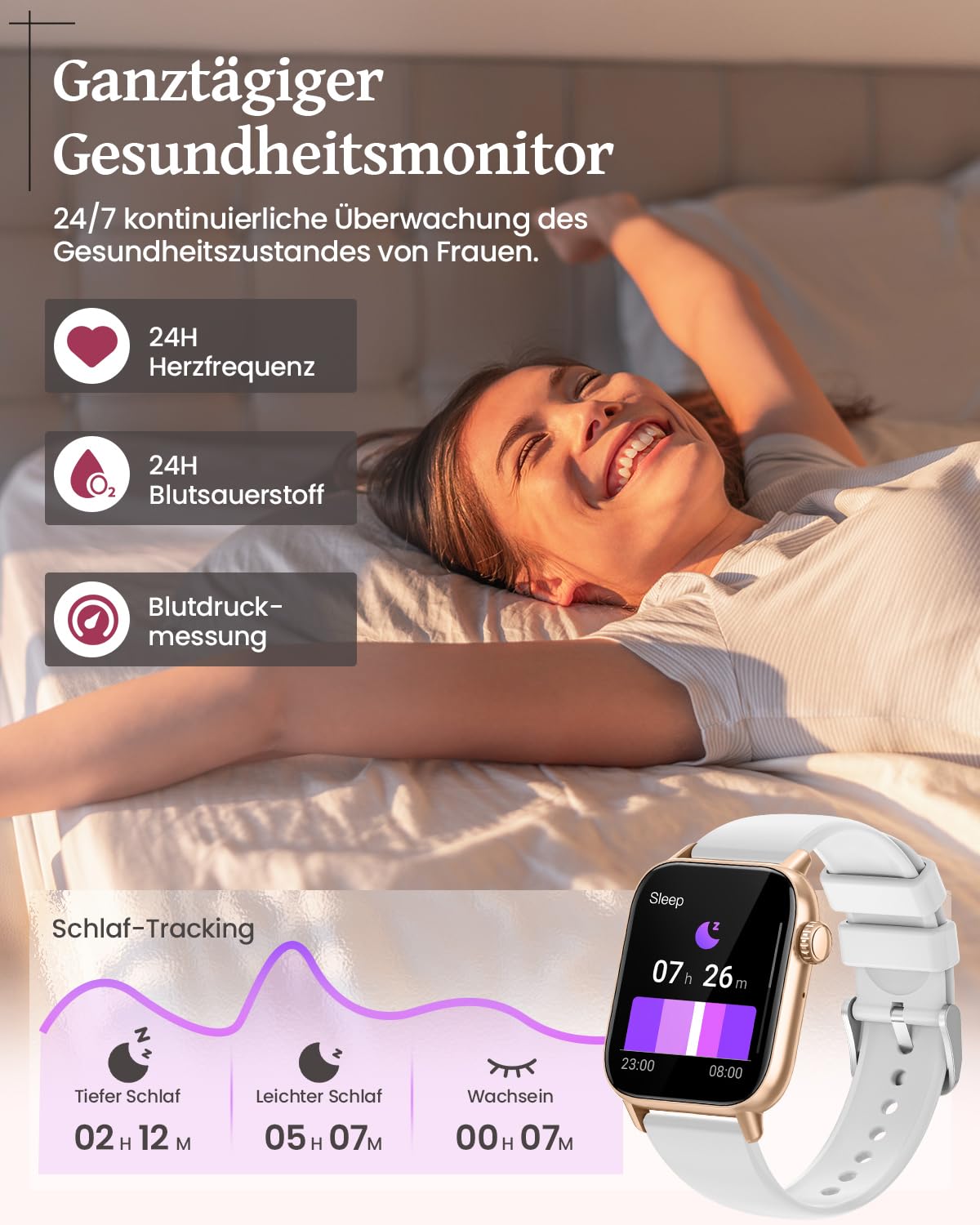 đăHealth MonitorăThis smartwatch is equipped with the LC11S heart rate sensor, allowing for 24-hour heart rate monitoring. It alerts you if your heart rate is too high or too low. Additionally, the smartwatch for women measures blood oxygen, blood pressure, and monitors your sleep to understand your sleep status. The smartwatch always cares about your health and allows you to enjoy life carefreely.