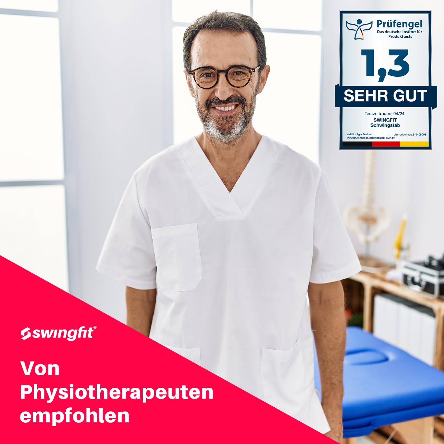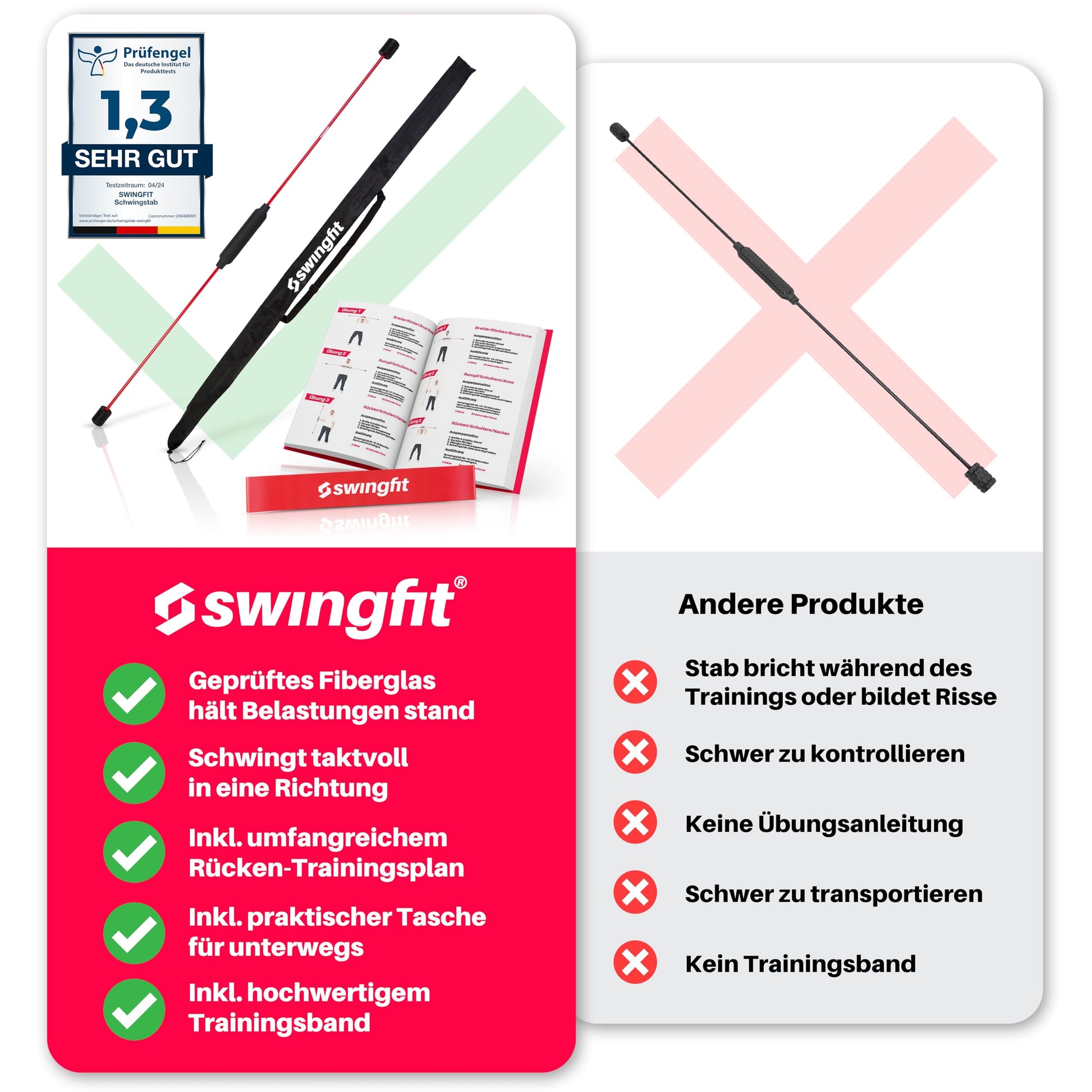 ["✔ RECOMMENDED BY THERAPISTS - Train your deep muscles easily from home without annoying gym visits with the vibration swing stick. It targets upper body & back muscles specifically!","✔ PLEASANT VIBRATIONS - The swingfit gymnastics stick doesn't rattle like other fitness sticks and swings gracefully in one direction. The non-slip handle always stabilizes your position!","✔ HIGH-QUALITY CONSTRUCTION - Weights & handles are made of odorless plastic and securely mounted on the wobble stick. Thanks to the sturdy fiberglass rod, you can train worry-free!","✔ INCL. BACK TRAINING PLAN - With the PDF training plan, you get access to the essential exercises for your back, shoulders & neck. Start swinging smoothly with your swing stick!","✔ 100% QUALITY PROMISE - We take all the risk: If you're not completely satisfied with the stick, you get your money back - No questions asked!"]