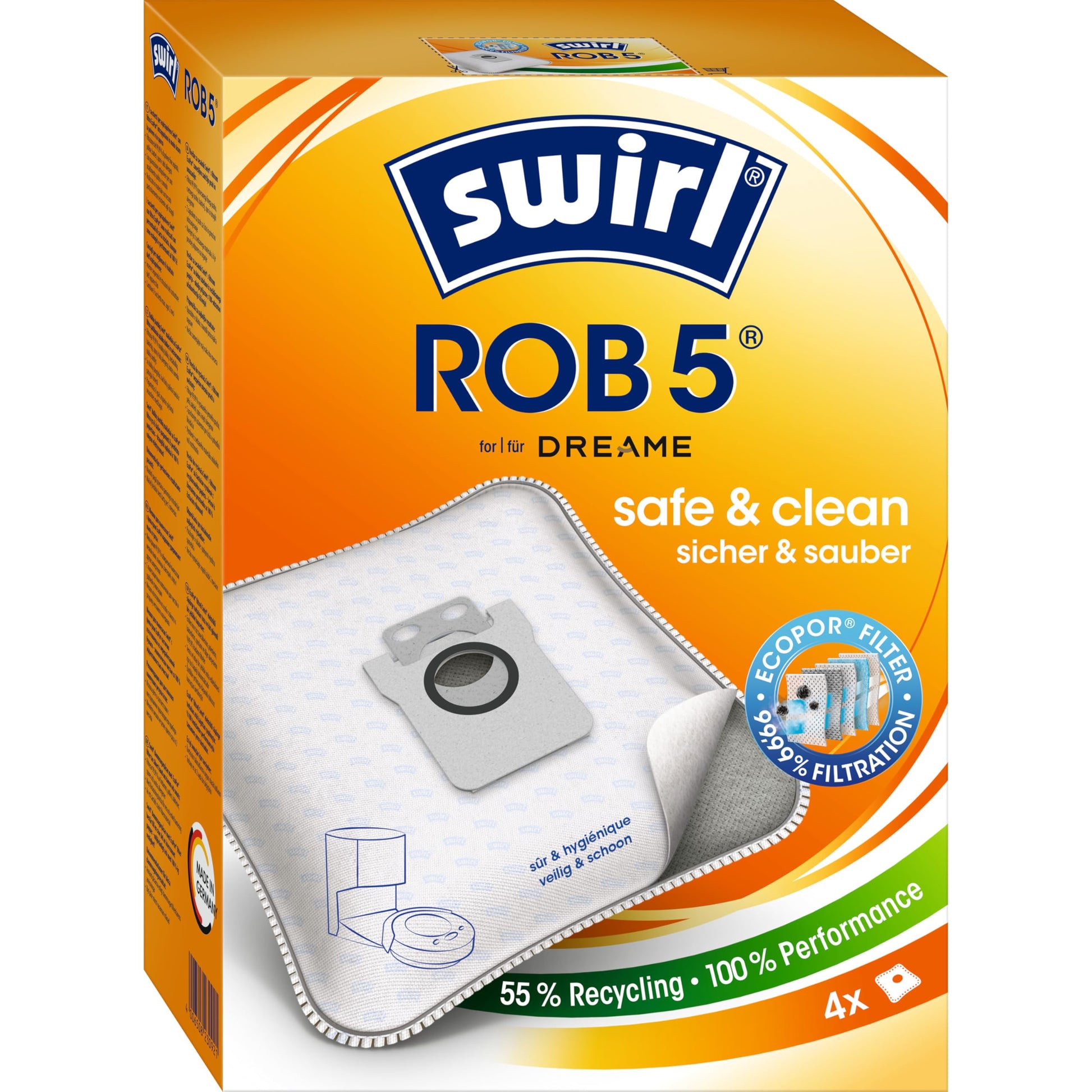 Swirl ROB 5 EcoPor Vacuum Bags (4 bags), tear-resistant dust bags for some Dreame robotic vacuums, 99.9% filtering of household dust & allergenic fine dust.