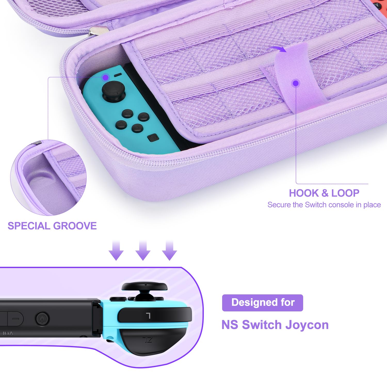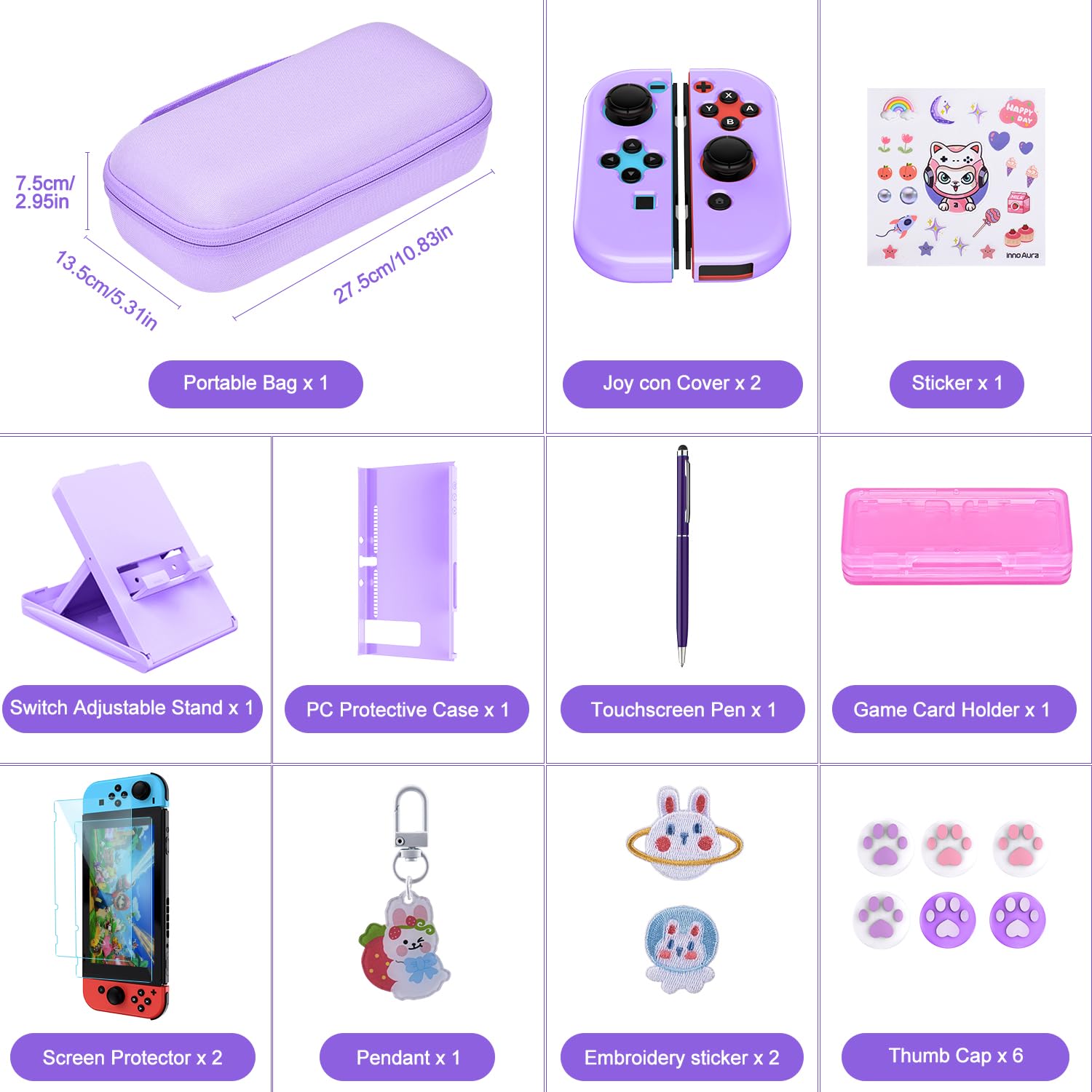 Switch case for Nintendo Switch - innoAura 18 in 1 Switch accessory kit with Switch case, Switch case, Switch game storage, Switch screen protector, Switch stand, Switch joystick caps (Purple)