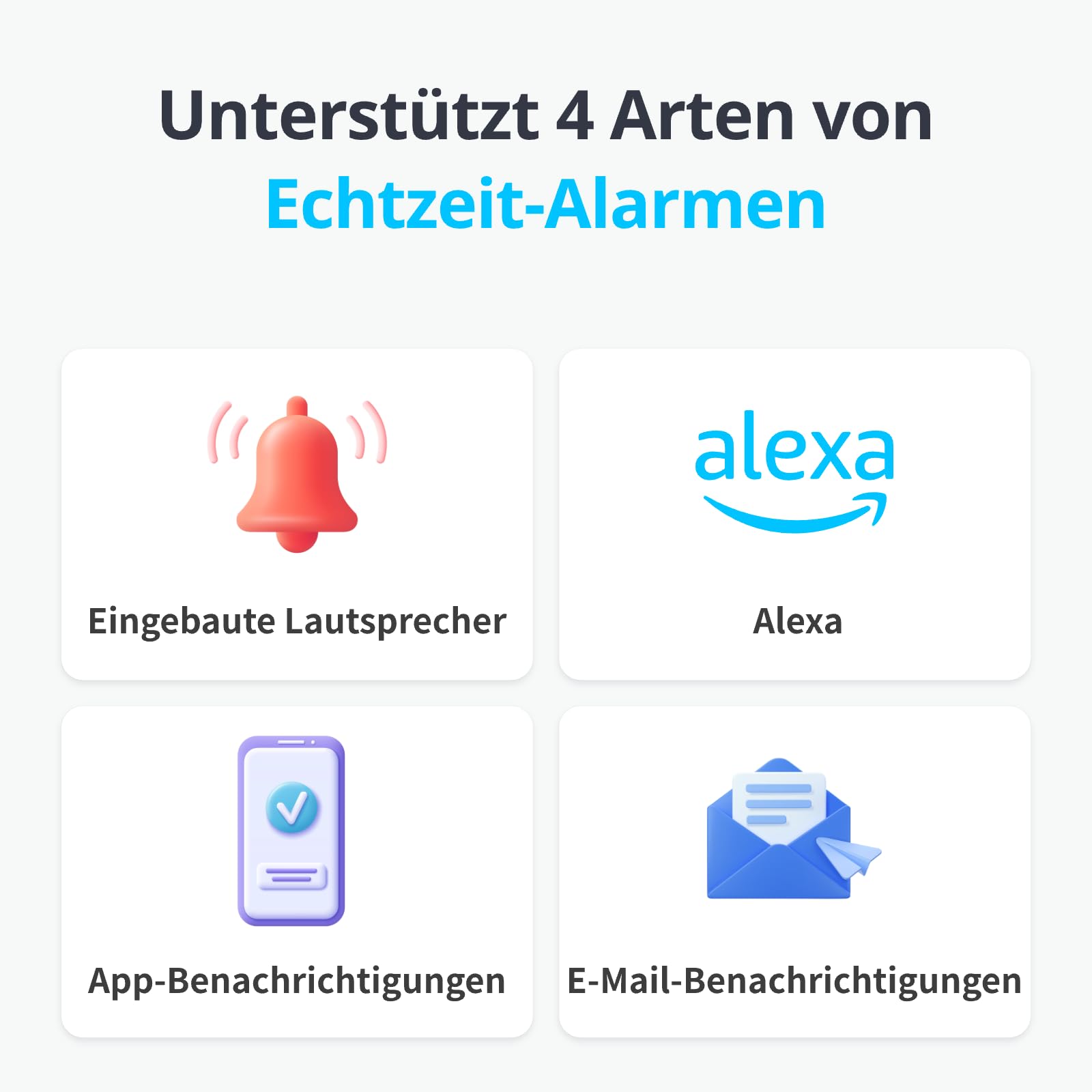 With loud alarm sounds: To ensure you can hear the alarm loudly and clearly in emergency situations, we have built in a 100 dB loud alarm. Once you reach the emergency site, the alarm can be easily turned off to calmly address the issue.