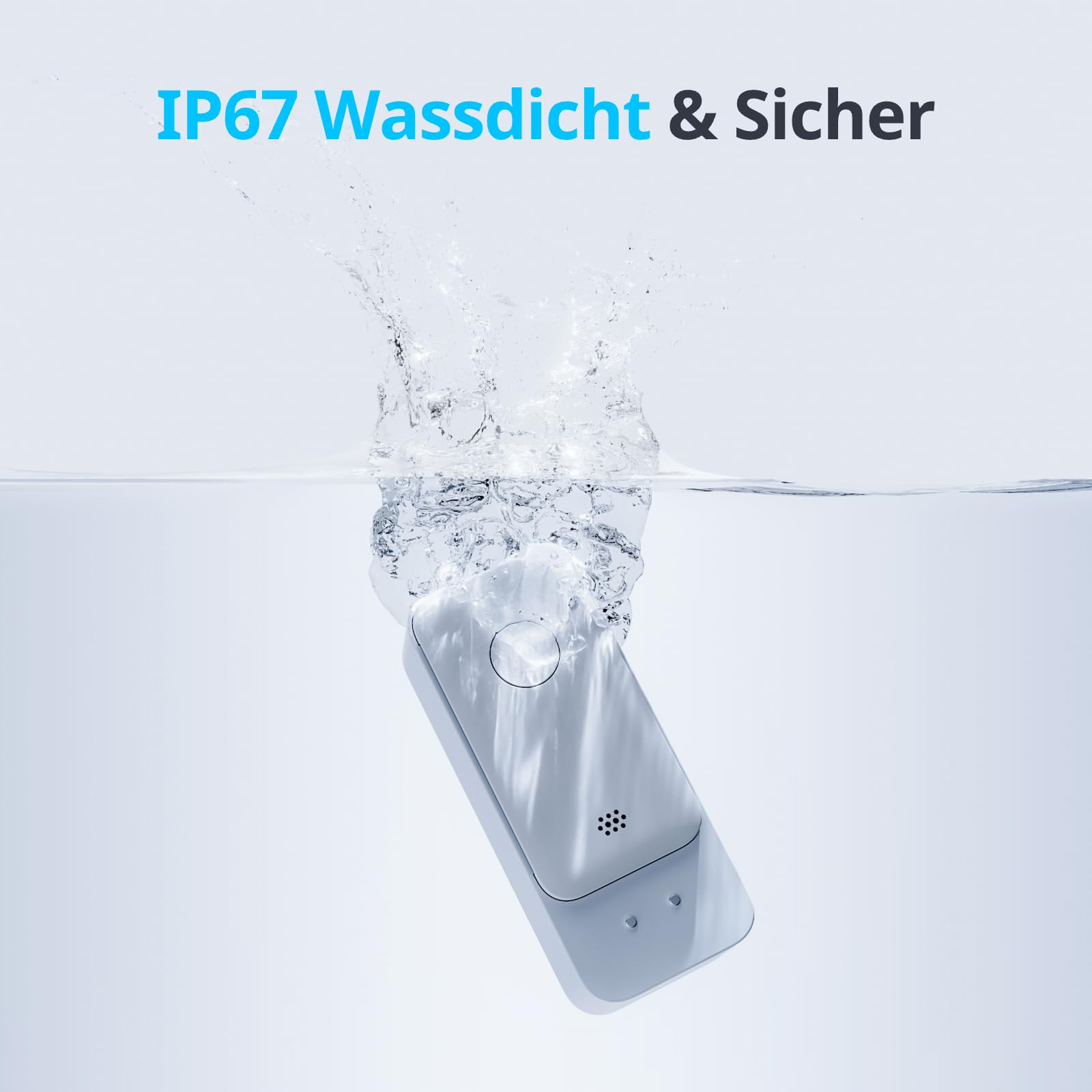 IP67 Waterproof, up to 18 months battery life: The water sensor is equipped with a fully sealed, waterproof casing and can be easily used in high humidity environments. It comes with 2 x AAA batteries and has a battery life of up to 18 months. If the battery level is low, the app will prompt you to replace the batteries.